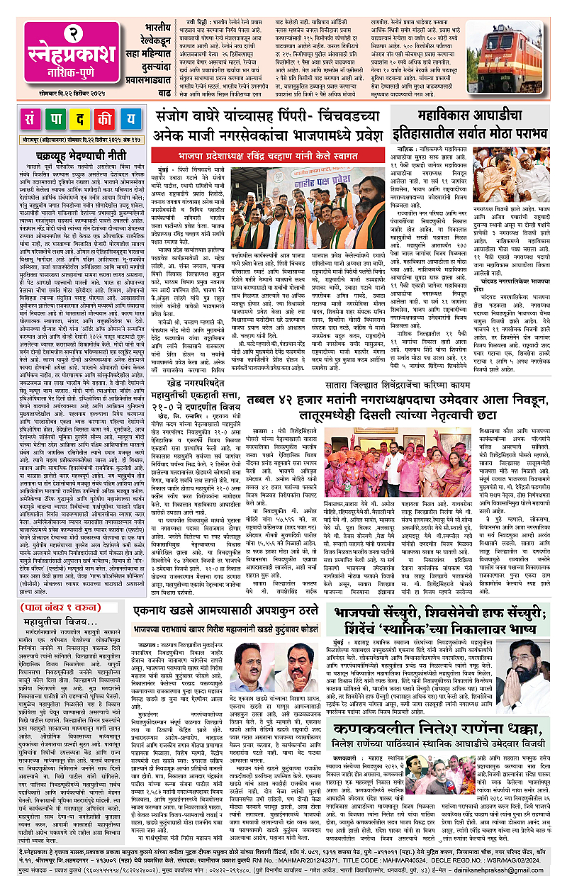 Daily Snehprakash (Marathi) Page: 2 December 22, 2025 Ahilyanagar-Pune-Nashik-shrirampur maharashtra 1 2 3 4 Page 1Page 2Page 3Page 4 × Daily Snehprakash (Marathi) cccc1-4 c21-4 c31-4 c4 << First << 2 >> Last >> Page no 1Page no 2Page no 3Page no 4
