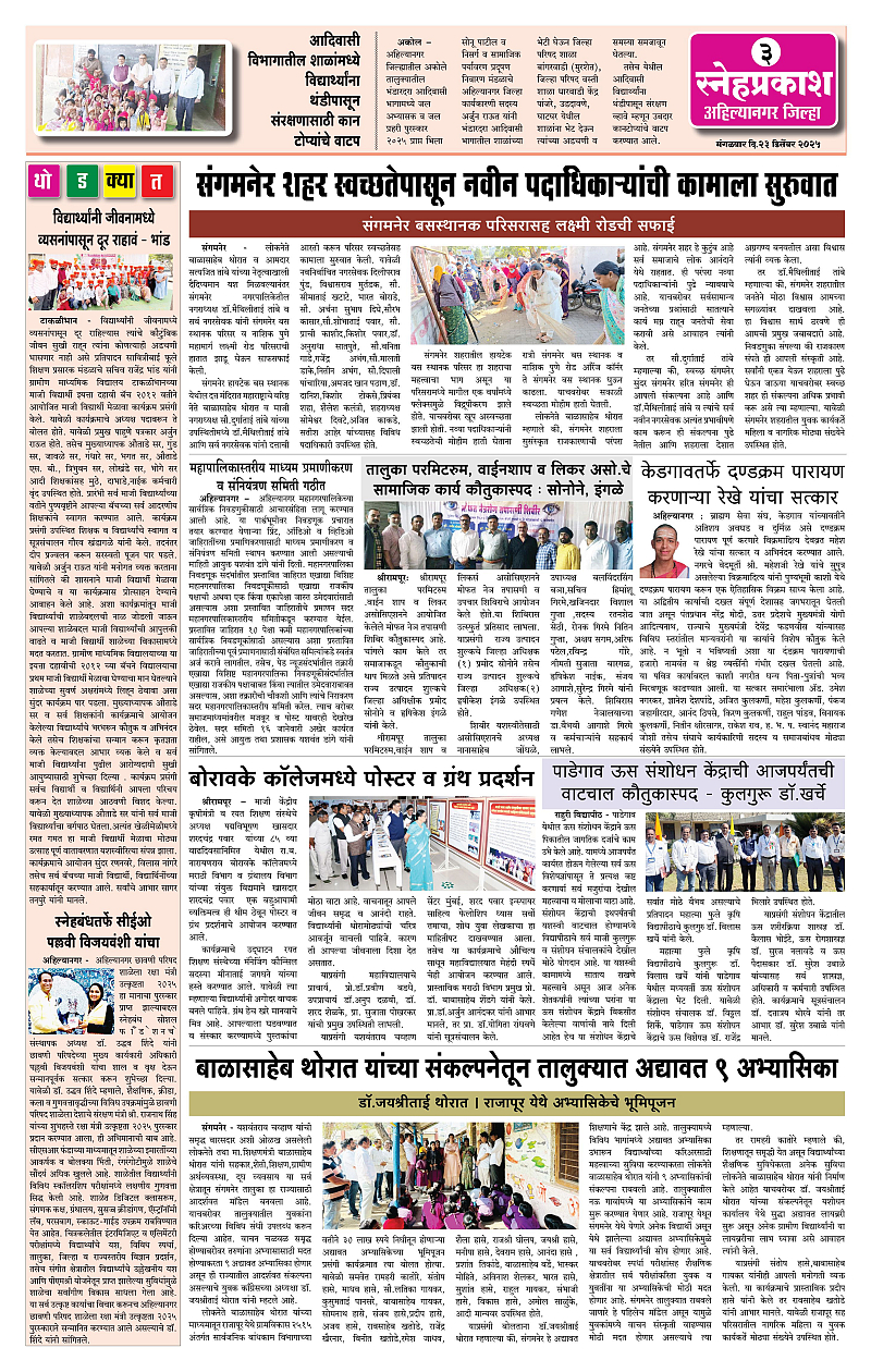 Daily Snehprakash (Marathi) Page: 3 December 23, 2025 Ahilyanagar-Pune-Nashik-shrirampur maharashtra 1 2 3 4 Page 1Page 2Page 3Page 4 × Daily Snehprakash (Marathi) 4424344 << First << 3 >> Last >> Page no 1Page no 2Page no 3Page no 4