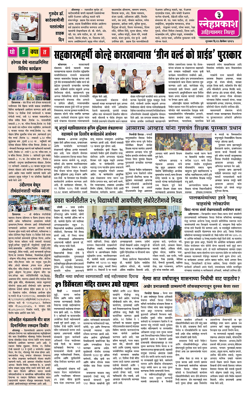 Daily Snehprakash (Marathi) Page: 3 December 25, 2025 Ahilyanagar-Pune-Nashik-shrirampur maharashtra 1 2 3 4 Page 1Page 2Page 3Page 4 × Daily Snehprakash (Marathi) 4424344 << First << 3 >> Last >> Page no 1Page no 2Page no 3Page no 4