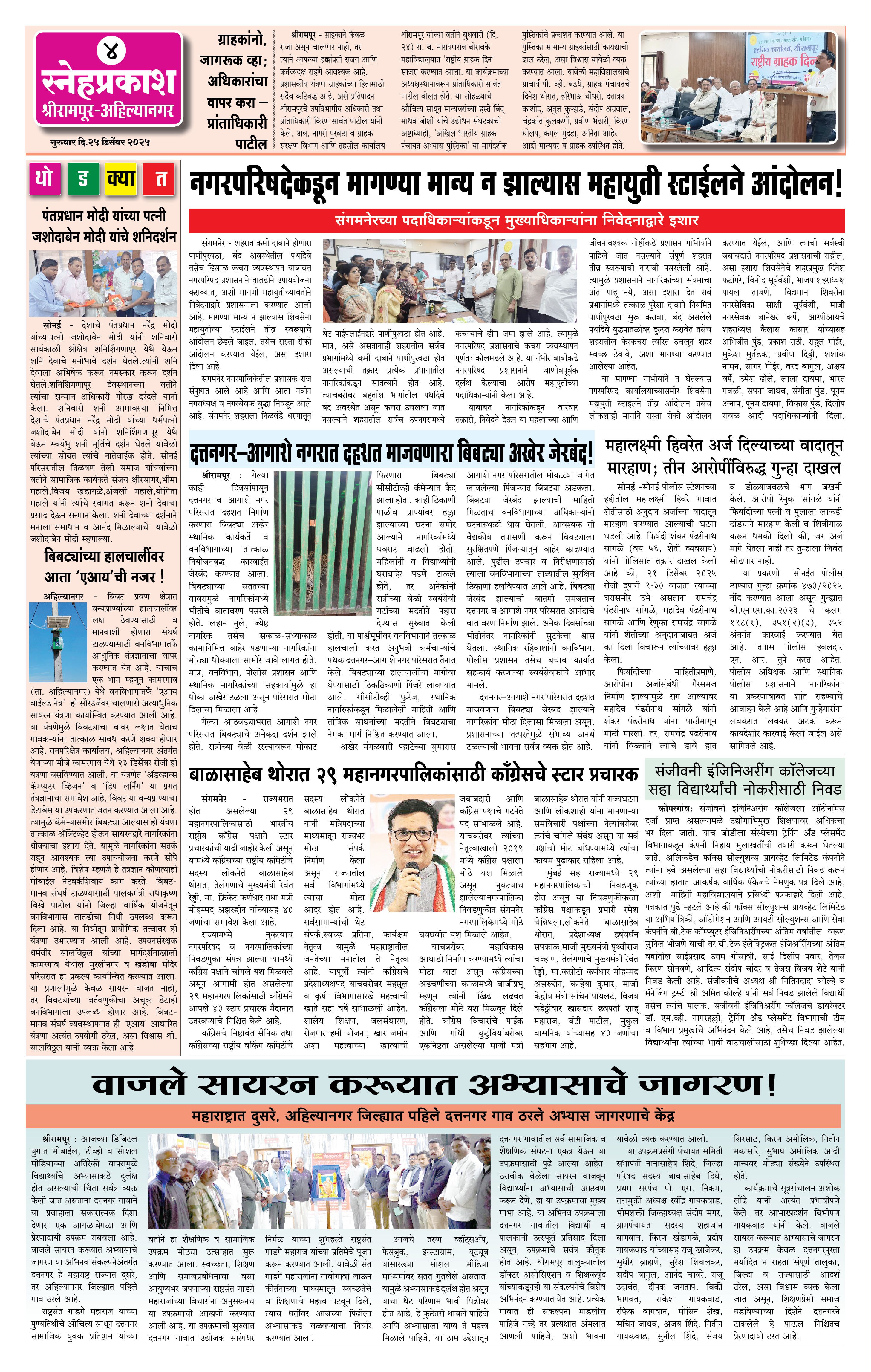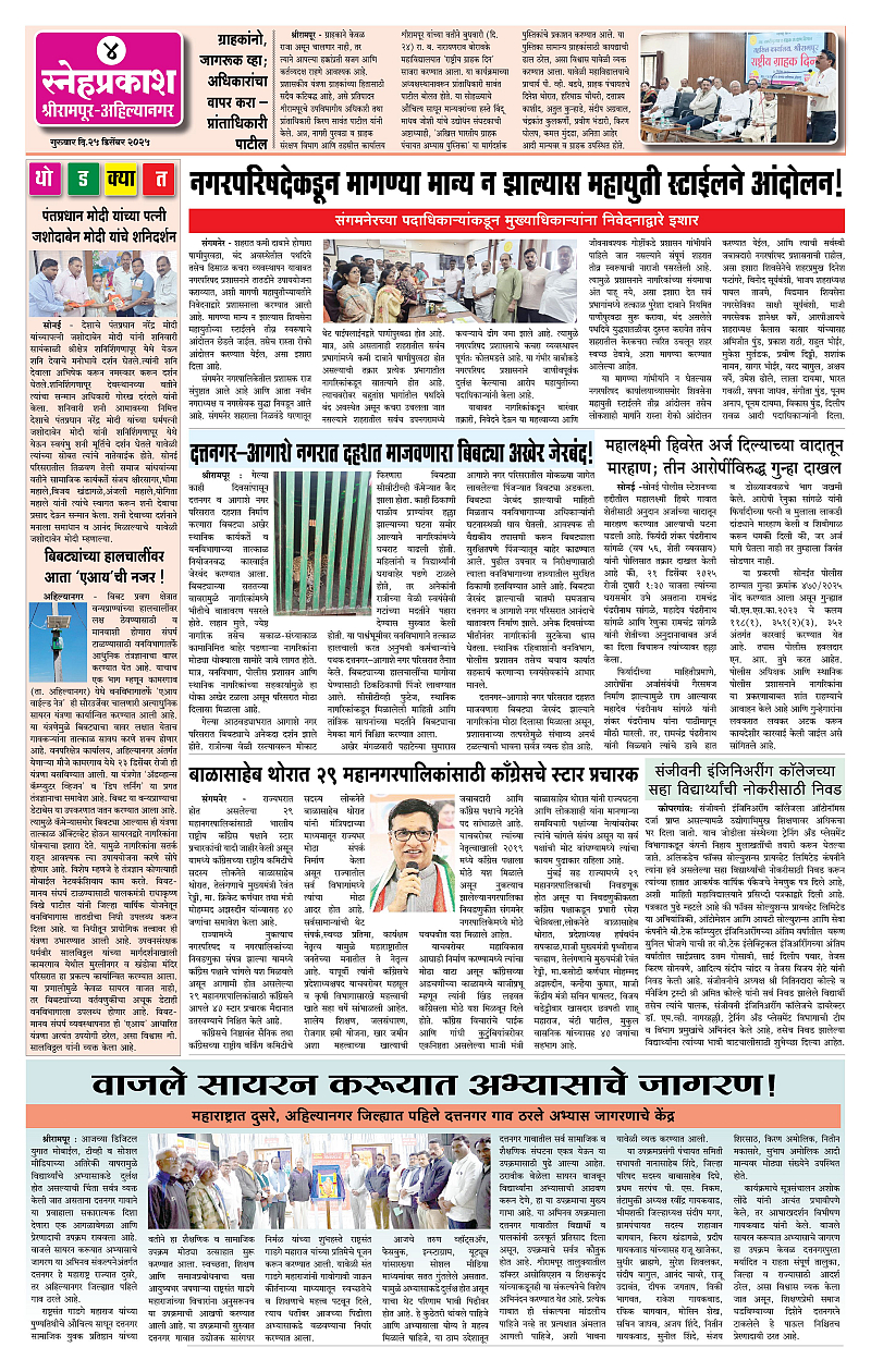 Daily Snehprakash (Marathi) Page: 4 December 25, 2025 Ahilyanagar-Pune-Nashik-shrirampur maharashtra 1 2 3 4 Page 1Page 2Page 3Page 4 × Daily Snehprakash (Marathi) 4424344 << First << 4 >> Last >> Page no 1Page no 2Page no 3Page no 4