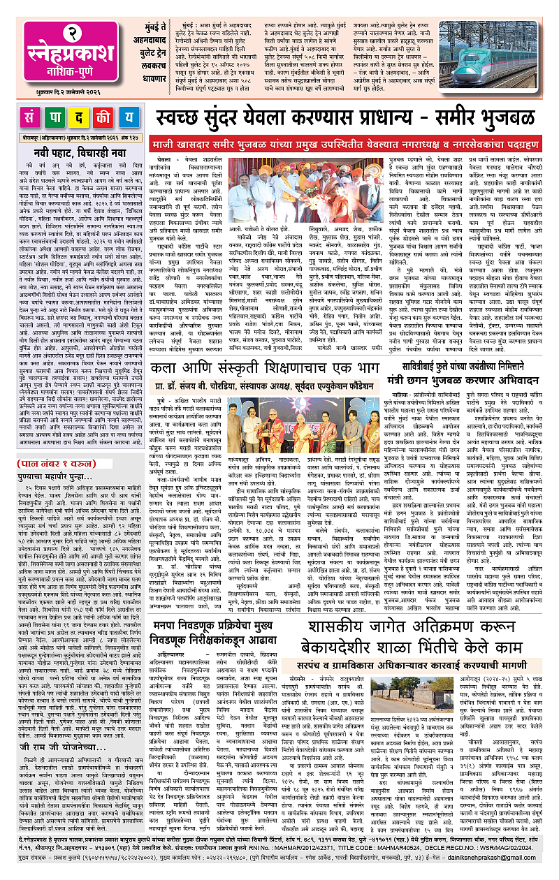 Daily Snehprakash (Marathi) Page: 2 January 02, 2026 Ahilyanagar-Pune-Nashik-shrirampur maharashtra 1 2 3 4 Page 1Page 2Page 3Page 4 × Daily Snehprakash (Marathi) 3323334 << First << 2 >> Last >> Page no 1Page no 2Page no 3Page no 4