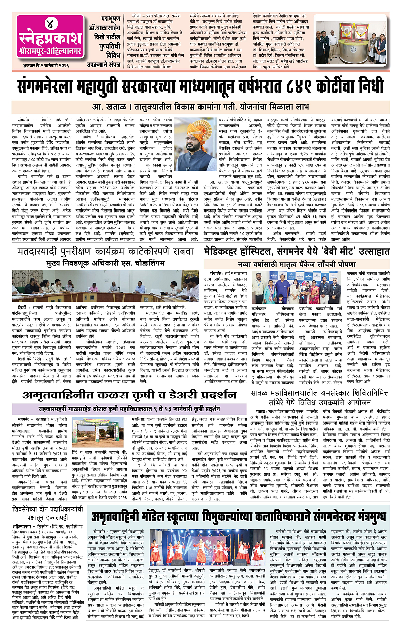 Daily Snehprakash (Marathi) Page: 4 January 02, 2026 Ahilyanagar-Pune-Nashik-shrirampur maharashtra 1 2 3 4 Page 1Page 2Page 3Page 4 × Daily Snehprakash (Marathi) 3323334 << First << 4 >> Last >> Page no 1Page no 2Page no 3Page no 4