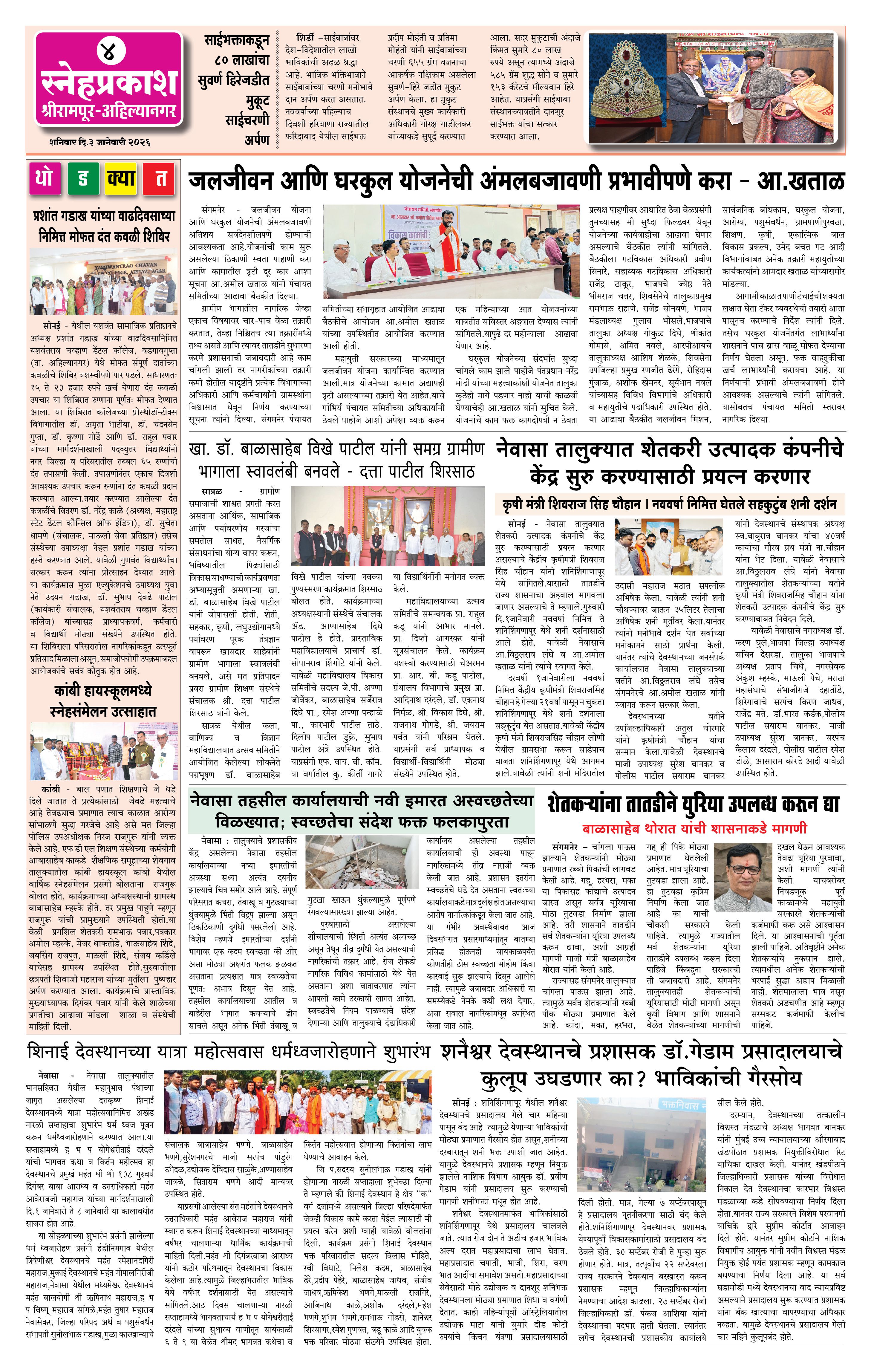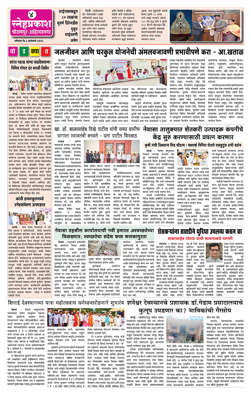 Daily Snehprakash (Marathi) Page: 4 January 03, 2026 Ahilyanagar-Pune-Nashik-shrirampur maharashtra 1 2 3 4 Page 1Page 2Page 3Page 4 × Daily Snehprakash (Marathi) 3323334 << First << 4 >> Last >> Page no 1Page no 2Page no 3Page no 4