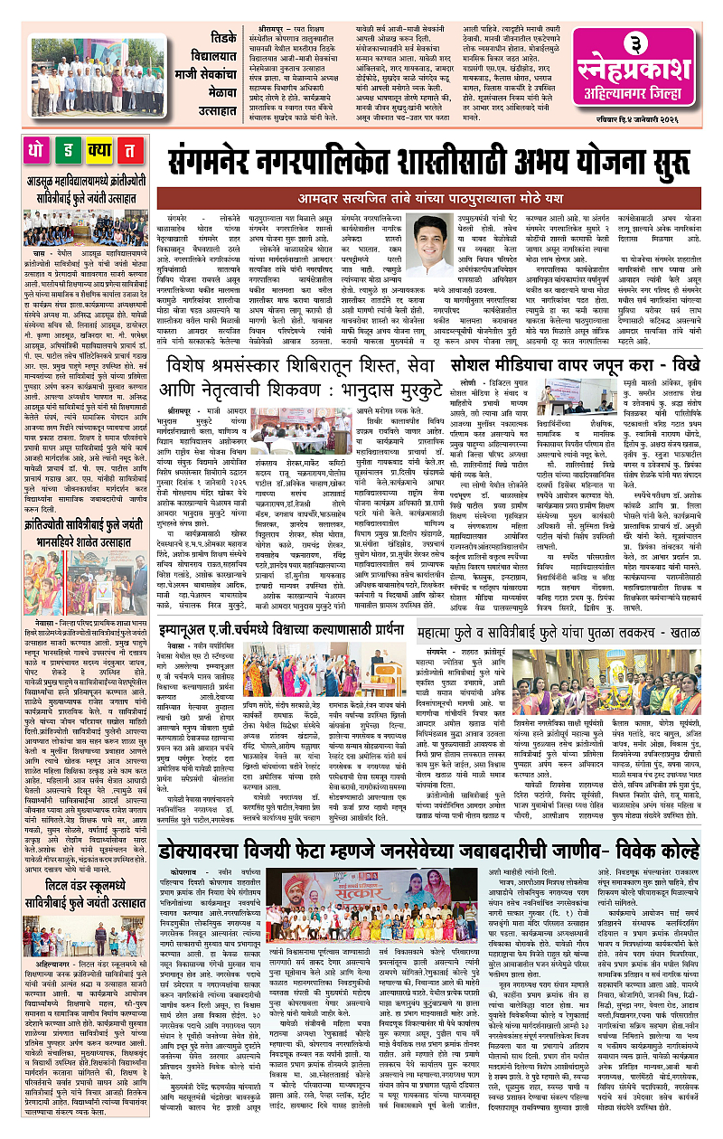 Daily Snehprakash (Marathi) Page: 3 January 04, 2026 Ahilyanagar-Pune-Nashik-shrirampur maharashtra 1 2 3 4 Page 1Page 2Page 3Page 4 × Daily Snehprakash (Marathi) 3323334 << First << 3 >> Last >> Page no 1Page no 2Page no 3Page no 4