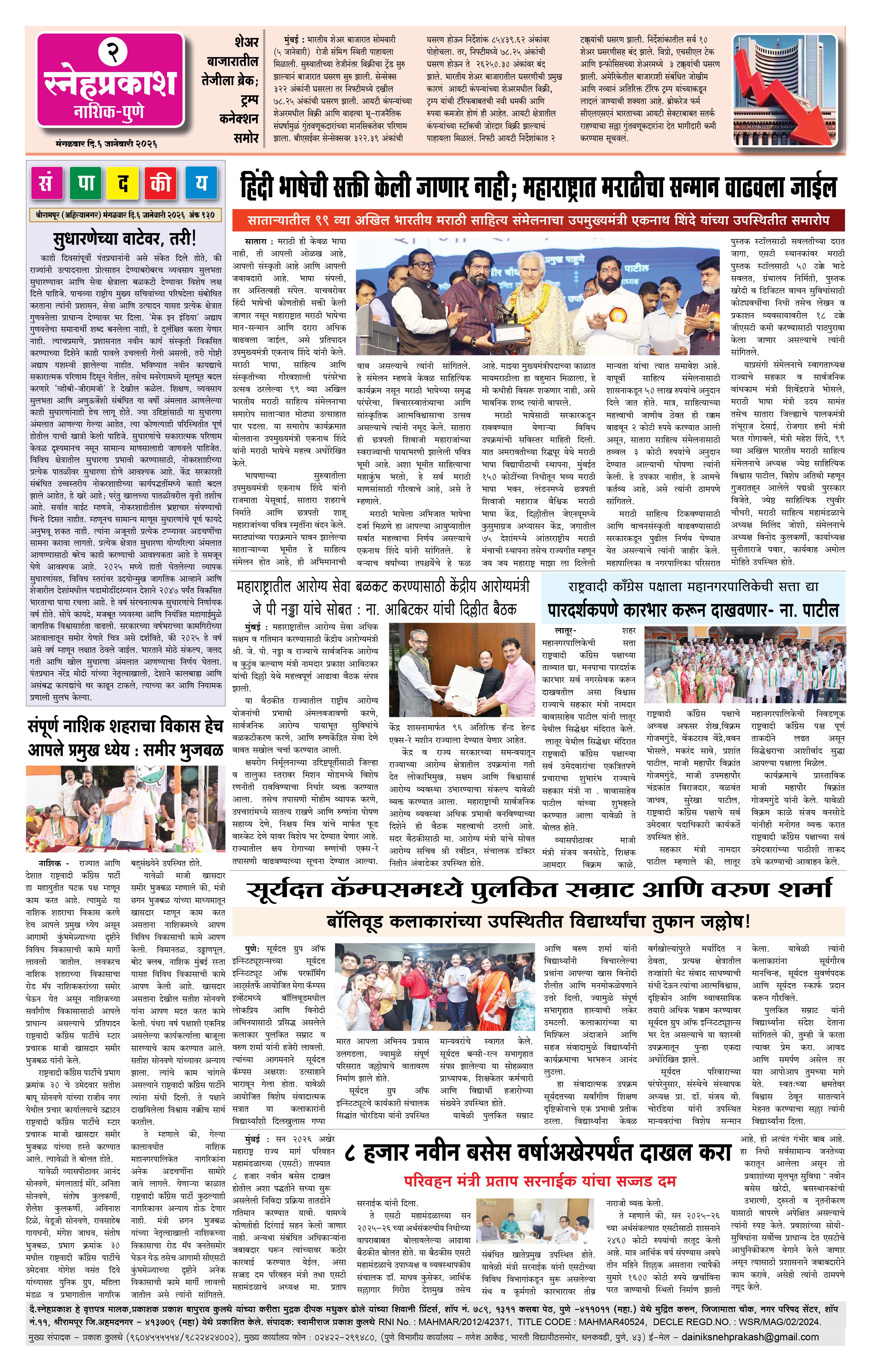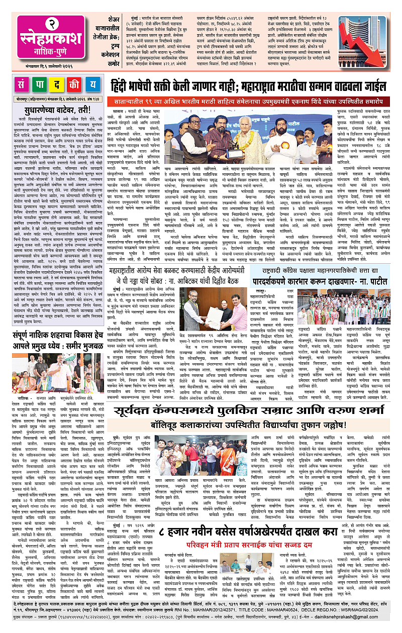 Daily Snehprakash (Marathi) Page: 2 January 06, 2026 Ahilyanagar-Pune-Nashik-shrirampur maharashtra 1 2 3 4 Page 1Page 2Page 3Page 4 × Daily Snehprakash (Marathi) 1-41-421-431-44 << First << 2 >> Last >> Page no 1Page no 2Page no 3Page no 4