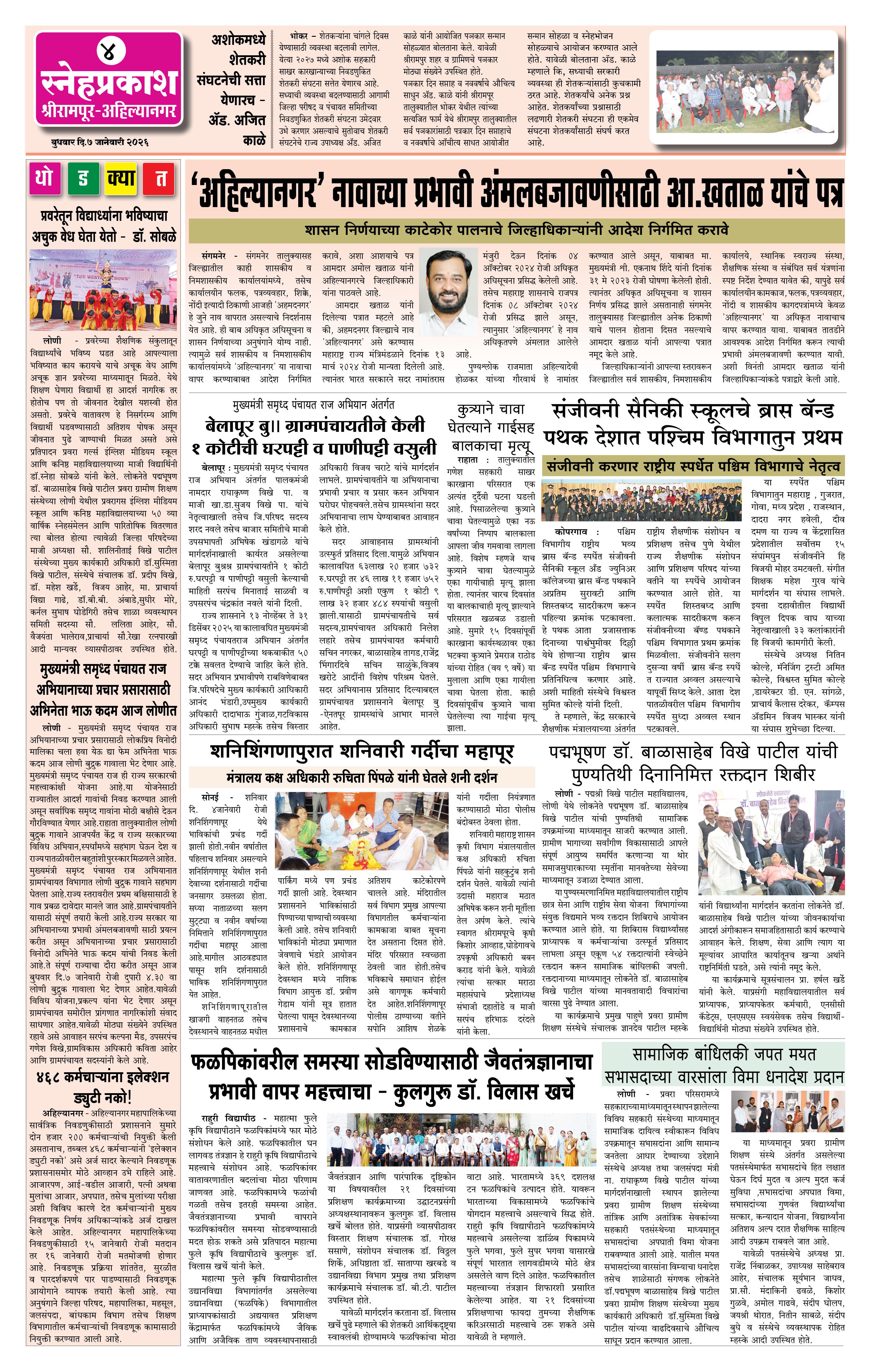 Daily Snehprakash (Marathi) Page: 4 January 07, 2026 Ahilyanagar-Pune-Nashik-shrirampur maharashtra 1 2 3 4 Page 1Page 2Page 3Page 4 × Daily Snehprakash (Marathi) 1-41-421-431-44 << First << 4 >> Last >> Page no 1Page no 2Page no 3Page no 4