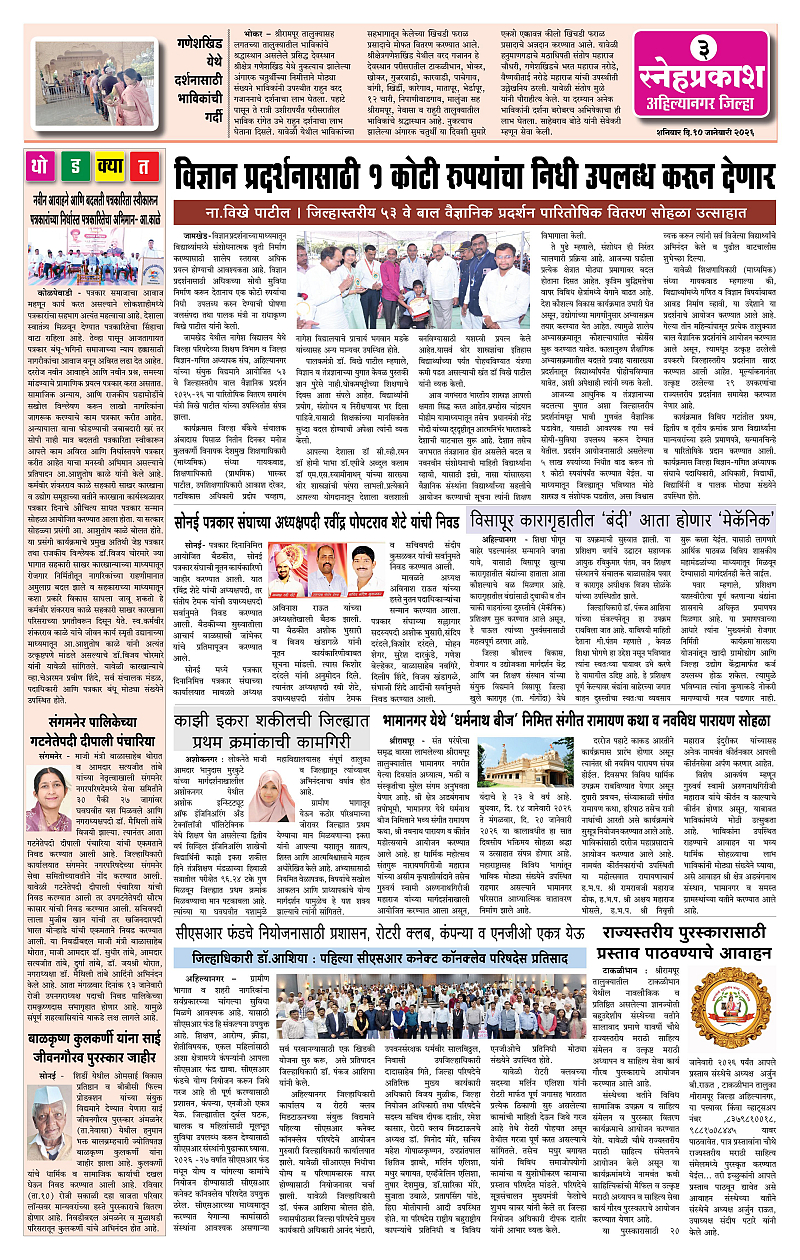 Daily Snehprakash (Marathi) Page: 3 January 10, 2026 Ahilyanagar-Pune-Nashik-shrirampur maharashtra 1 2 3 4 Page 1Page 2Page 3Page 4 × Daily Snehprakash (Marathi) 1-41-421-431-44 << First << 3 >> Last >> Page no 1Page no 2Page no 3Page no 4