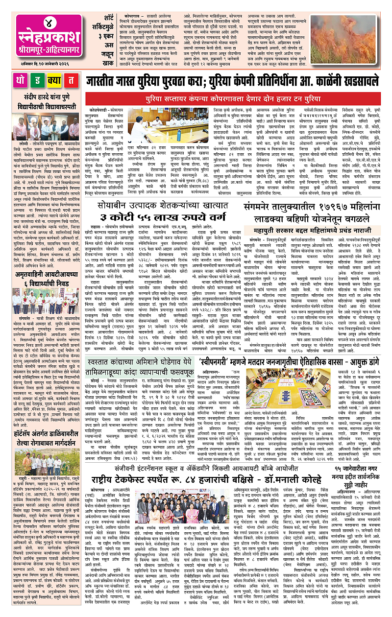 Daily Snehprakash (Marathi) Page: 4 January 10, 2026 Ahilyanagar-Pune-Nashik-shrirampur maharashtra 1 2 3 4 Page 1Page 2Page 3Page 4 × Daily Snehprakash (Marathi) 1-41-421-431-44 << First << 4 >> Last >> Page no 1Page no 2Page no 3Page no 4