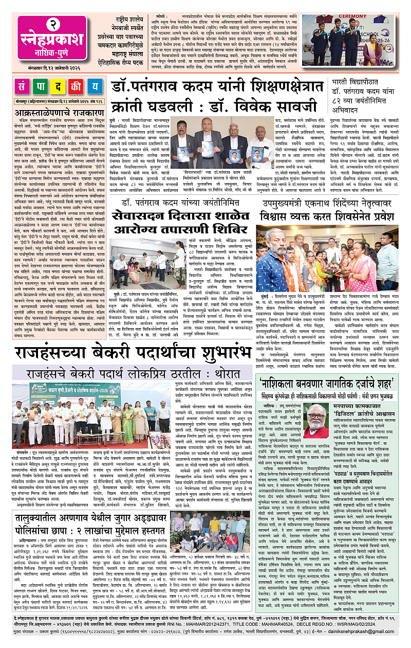 Daily Snehprakash (Marathi) Page: 2 January 13, 2026 Ahilyanagar-Pune-Nashik-shrirampur maharashtra 1 2 3 4 Page 1Page 2Page 3Page 4 × Daily Snehprakash (Marathi) 1-4 SNEH PRAKASH COLOUR (13 January 2025)1-4 SNEH PRAKASH COLOUR (13 January 2025)21-4 SNEH PRAKASH COLOUR (13 January 2025)31-4 SNEH PRAKASH COLOUR (13 January 2025)4 << First << 2 >> Last >> Page no 1Page no 2Page no 3Page no 4
