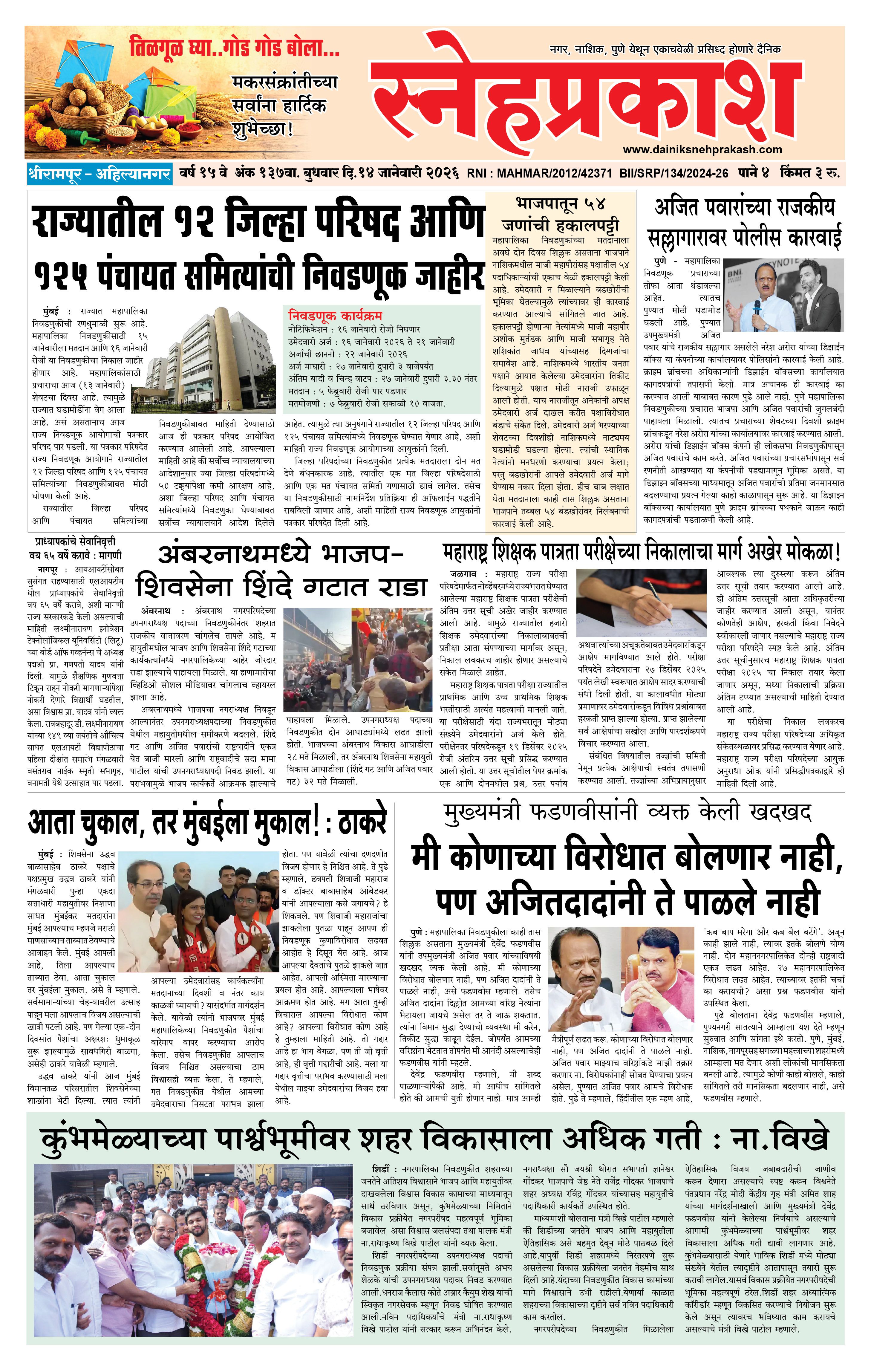 Daily Snehprakash (Marathi) January 14, 2026 Ahilyanagar-Pune-Nashik-shrirampur maharashtra 1 2 3 4 Page 1Page 2Page 3Page 4 × Daily Snehprakash (Marathi) 1-41-421-431-44 << First << 1 >> Last >> Page no 1Page no 2Page no 3Page no 4