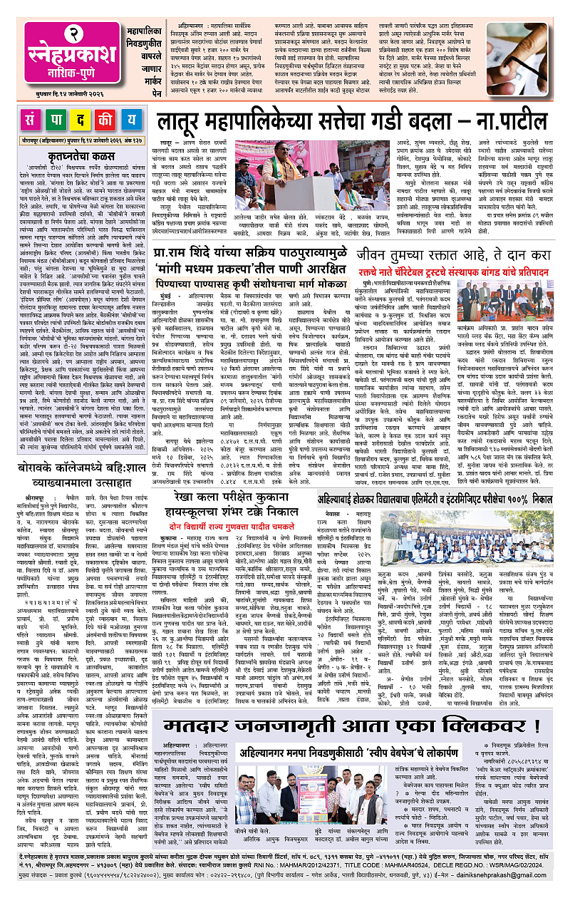 Daily Snehprakash (Marathi) Page: 2 January 14, 2026 Ahilyanagar-Pune-Nashik-shrirampur maharashtra 1 2 3 4 Page 1Page 2Page 3Page 4 × Daily Snehprakash (Marathi) 1-41-421-431-44 << First << 2 >> Last >> Page no 1Page no 2Page no 3Page no 4