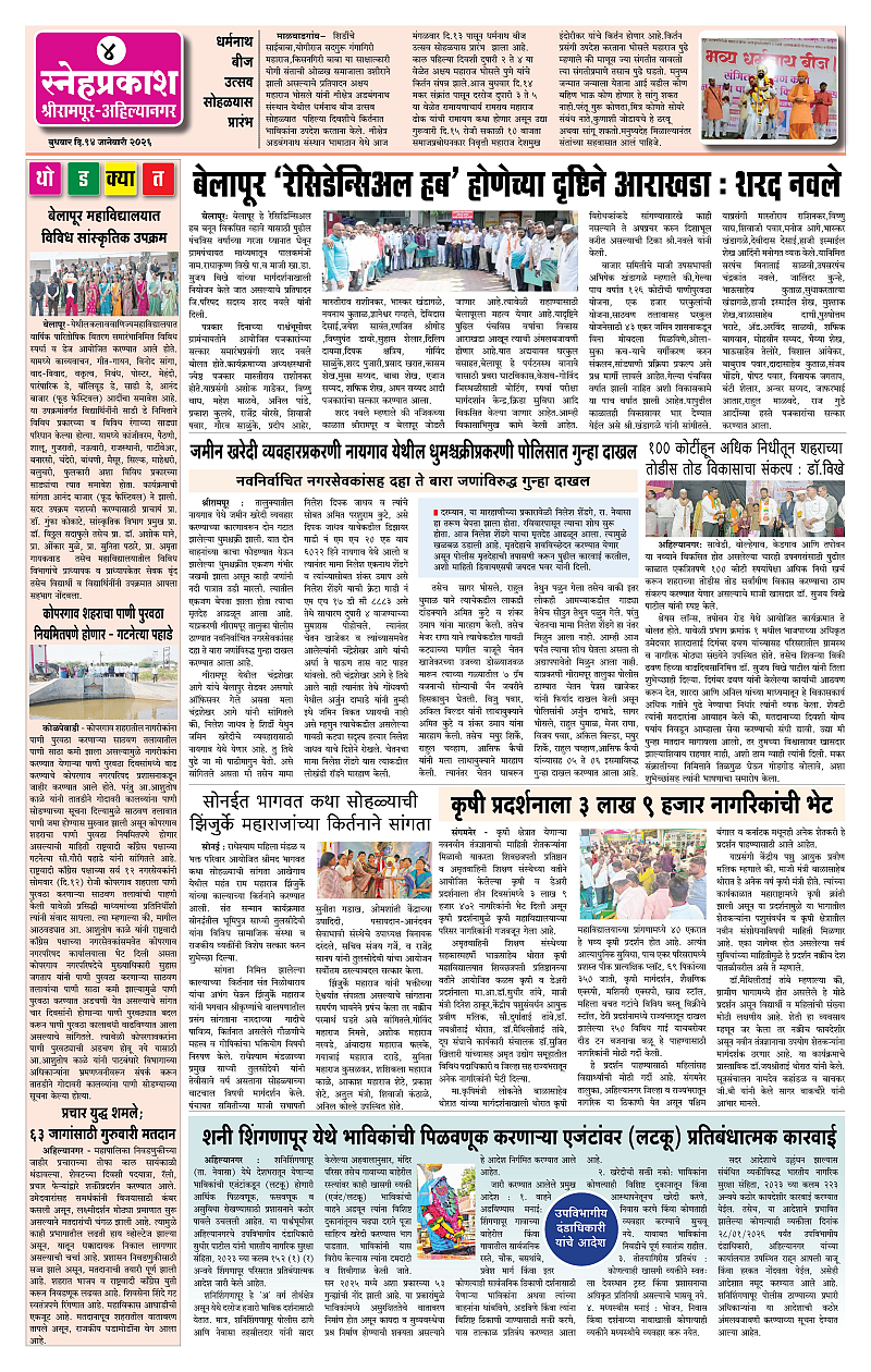 Daily Snehprakash (Marathi) Page: 4 January 14, 2026 Ahilyanagar-Pune-Nashik-shrirampur maharashtra 1 2 3 4 Page 1Page 2Page 3Page 4 × Daily Snehprakash (Marathi) 1-41-421-431-44 << First << 4 >> Last >> Page no 1Page no 2Page no 3Page no 4