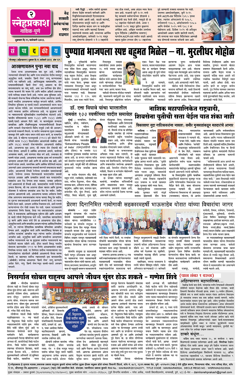Daily Snehprakash (Marathi) Page: 2 January 16, 2026 Ahilyanagar-Pune-Nashik-shrirampur maharashtra 1 2 3 4 Page 1Page 2Page 3Page 4 × Daily Snehprakash (Marathi) 1-41-421-431-44 << First << 2 >> Last >> Page no 1Page no 2Page no 3Page no 4