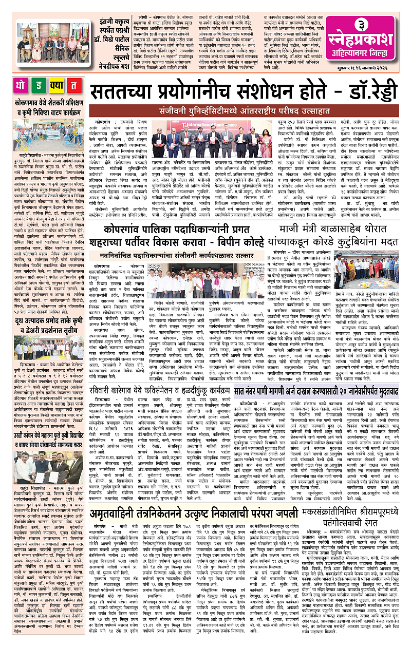 Daily Snehprakash (Marathi) Page: 3 January 16, 2026 Ahilyanagar-Pune-Nashik-shrirampur maharashtra 1 2 3 4 Page 1Page 2Page 3Page 4 × Daily Snehprakash (Marathi) 1-41-421-431-44 << First << 3 >> Last >> Page no 1Page no 2Page no 3Page no 4