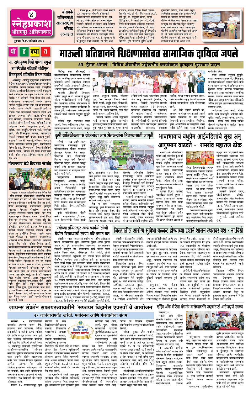 Daily Snehprakash (Marathi) Page: 4 January 16, 2026 Ahilyanagar-Pune-Nashik-shrirampur maharashtra 1 2 3 4 Page 1Page 2Page 3Page 4 × Daily Snehprakash (Marathi) 1-41-421-431-44 << First << 4 >> Last >> Page no 1Page no 2Page no 3Page no 4