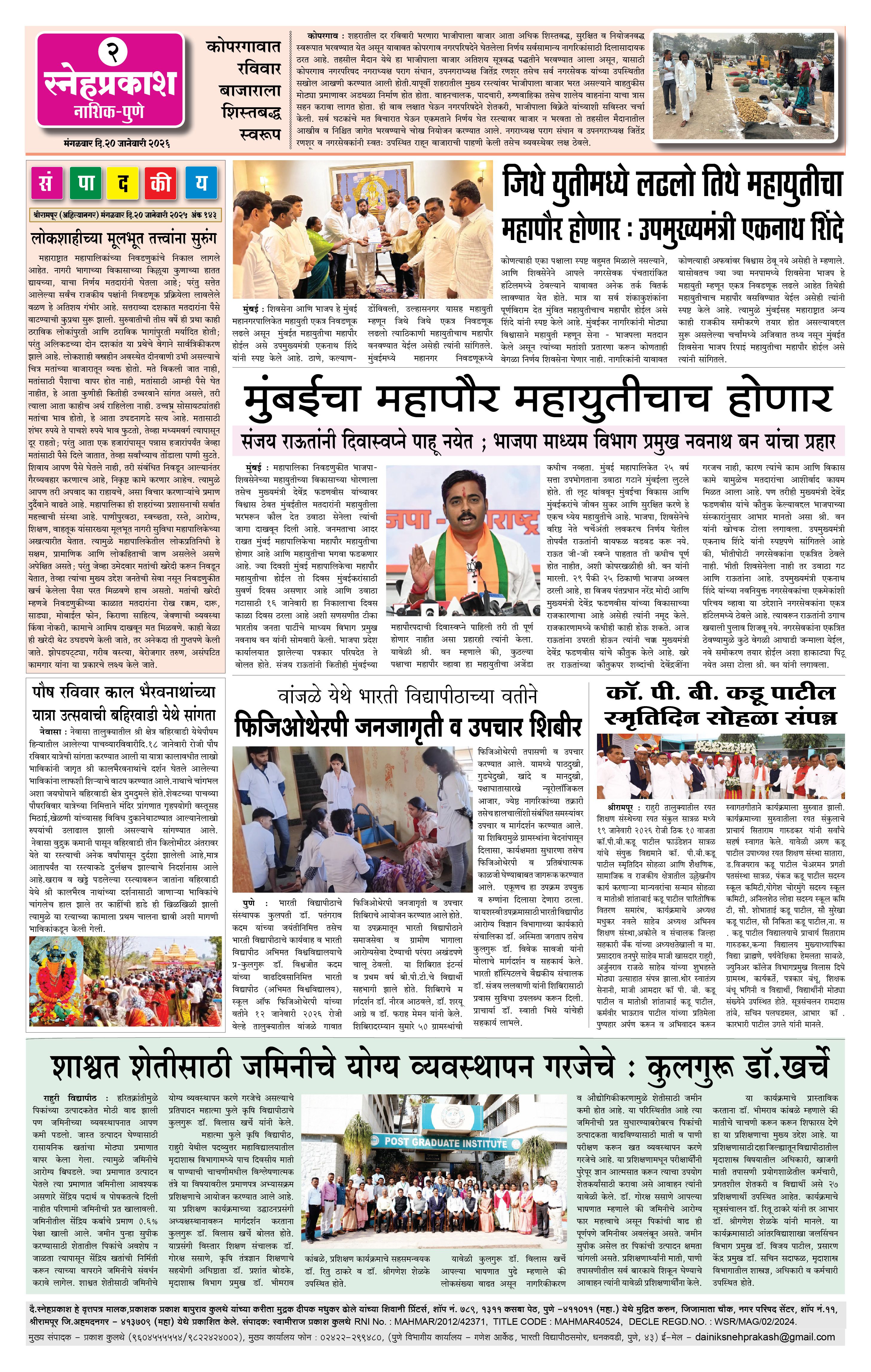 Daily Snehprakash (Marathi) Page: 2 January 20, 2026 Ahilyanagar-Pune-Nashik-shrirampur maharashtra 1 2 3 4 Page 1Page 2Page 3Page 4 × Daily Snehprakash (Marathi) SNEH PRAKASH 1-4 ColourSNEH PRAKASH 1-4 Colour2SNEH PRAKASH 1-4 Colour3SNEH PRAKASH 1-4 Colour4 << First << 2 >> Last >> Page no 1Page no 2Page no 3Page no 4