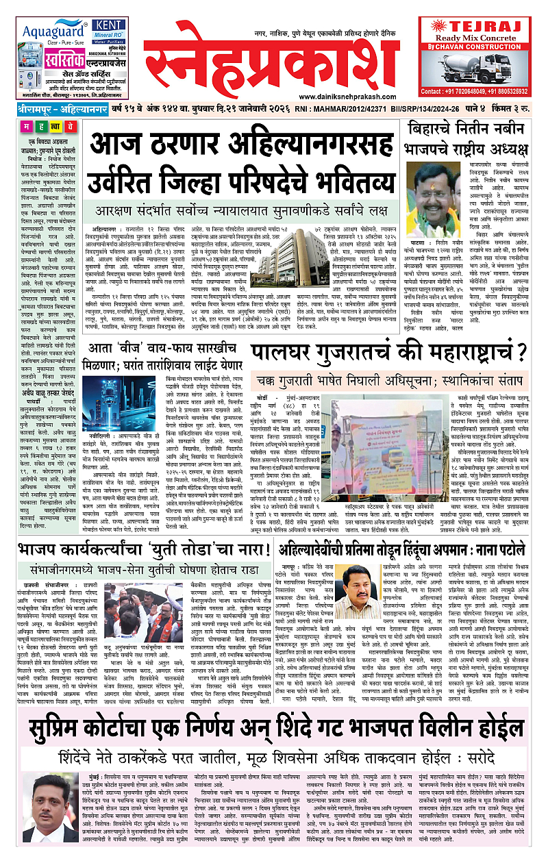 Daily Snehprakash (Marathi) January 21, 2026 Ahilyanagar-Pune-Nashik-shrirampur maharashtra 1 2 3 4 Page 1Page 2Page 3Page 4 × Daily Snehprakash (Marathi) 1-41-421-431-44 << First << 1 >> Last >> Page no 1Page no 2Page no 3Page no 4