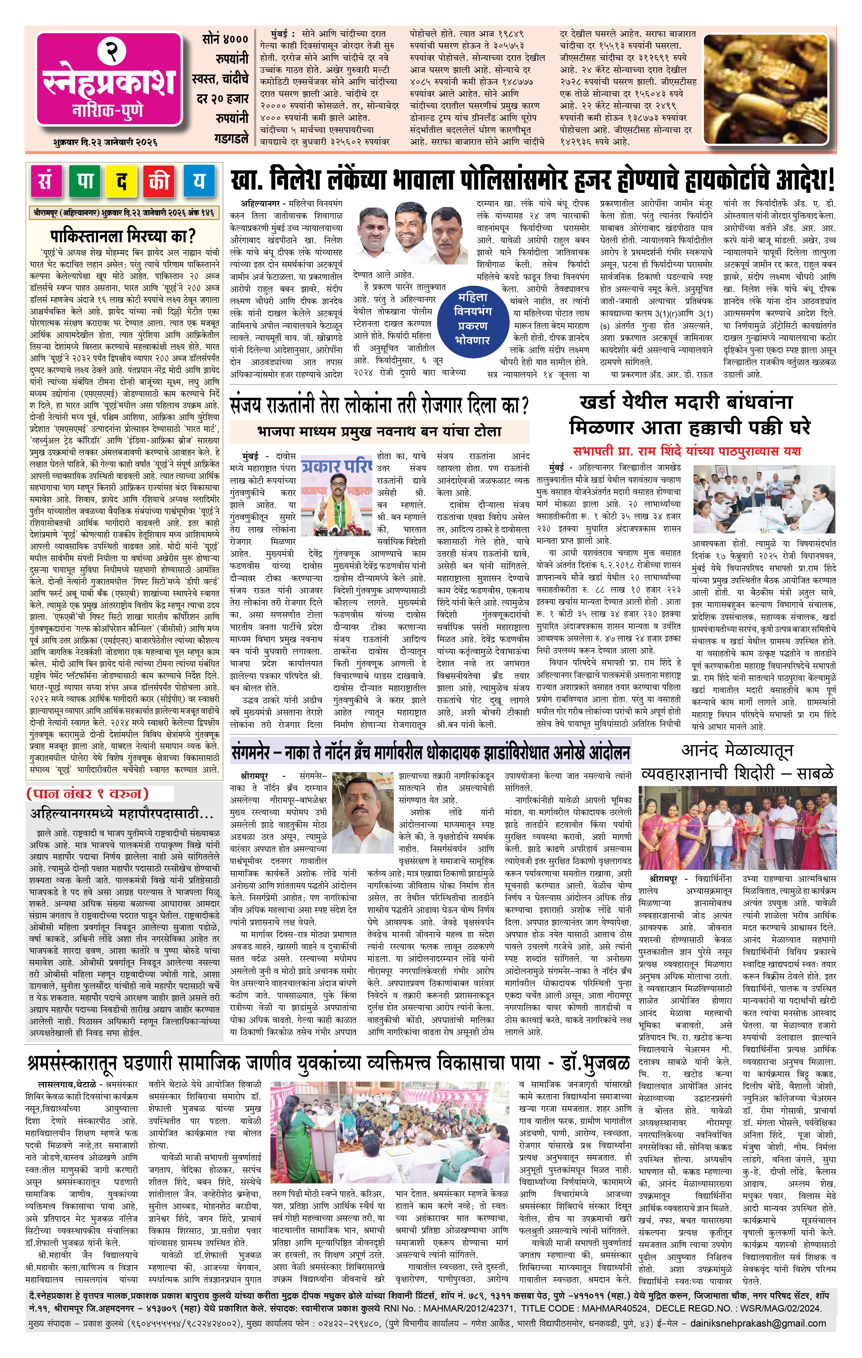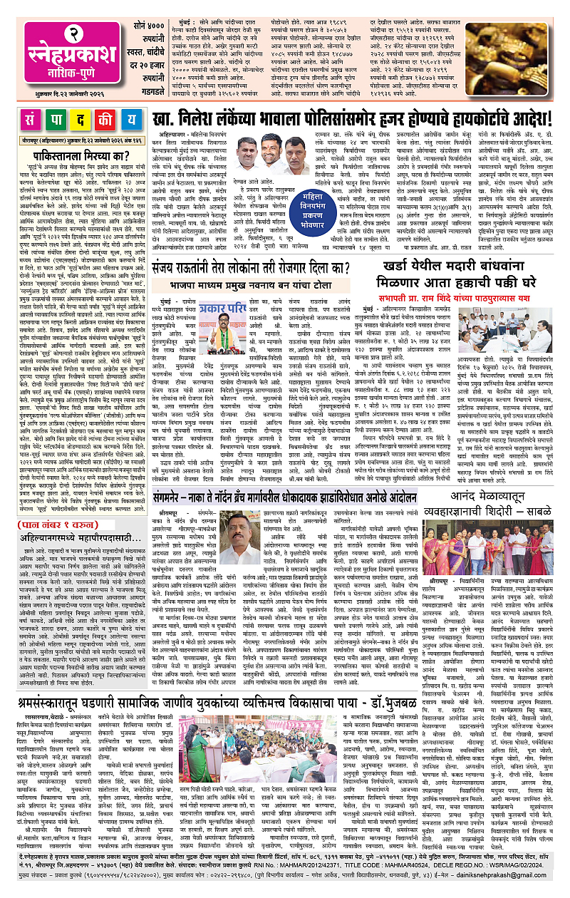 Daily Snehprakash (Marathi) Page: 2 January 23, 2026 ahilyanagar-pune-nashik-shrirampur-maharashtra 1 2 3 4 Page 1Page 2Page 3Page 4 × Daily Snehprakash (Marathi) 1-41-421-431-44 << First << 2 >> Last >> Page no 1Page no 2Page no 3Page no 4