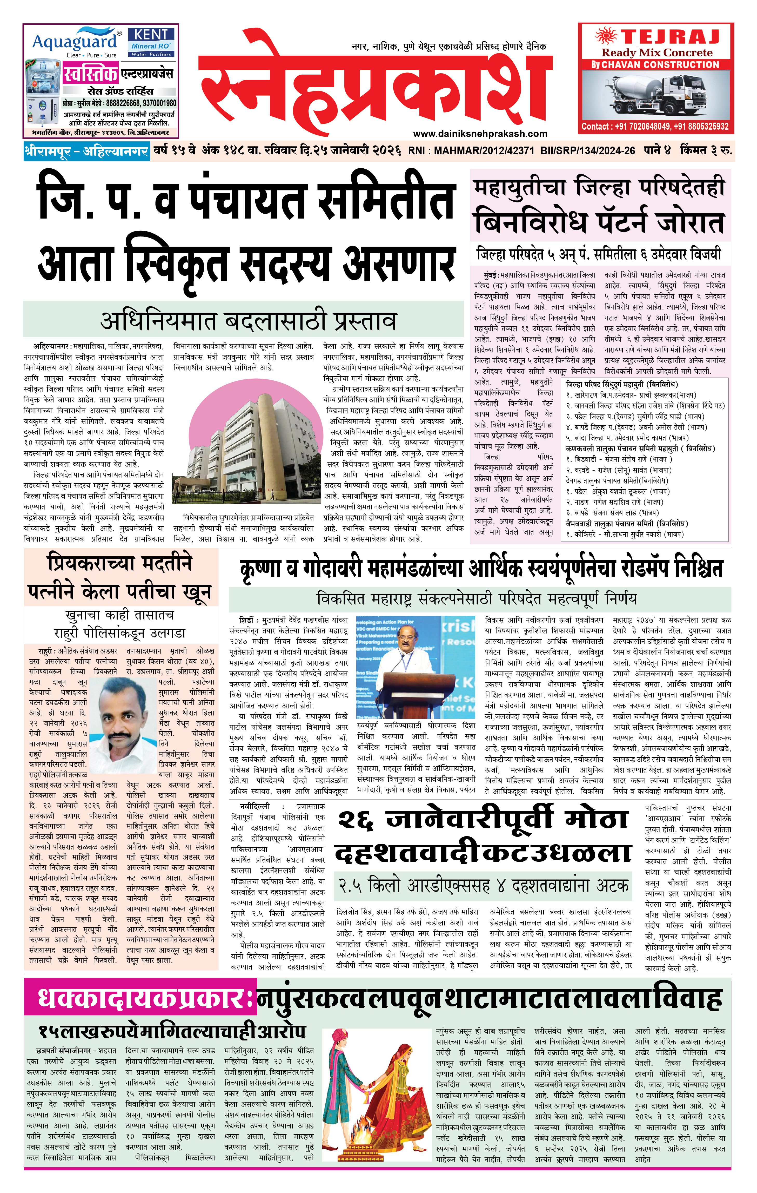 Daily Snehprakash (Marathi) January 25, 2026 Ahilyanagar-Pune-Nashik-shrirampur maharashtra 1 2 3 4 Page 1Page 2Page 3Page 4 × Daily Snehprakash (Marathi) 4424344 << First << 1 >> Last >> Page no 1Page no 2Page no 3Page no 4