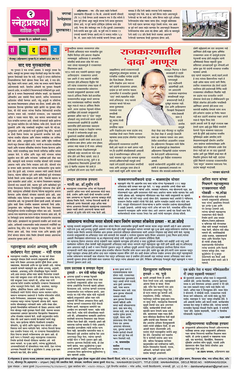 Daily Snehprakash (Marathi) Page: 2 January 29, 2026 Ahilyanagar-Pune-Nashik-shrirampur maharashtra 1 2 3 4 Page 1Page 2Page 3Page 4 × Daily Snehprakash (Marathi) 11 Snehprakash New1 Snehprakash New21 Snehprakash New3 << First << 2 >> Last >> Page no 1Page no 2Page no 3Page no 4