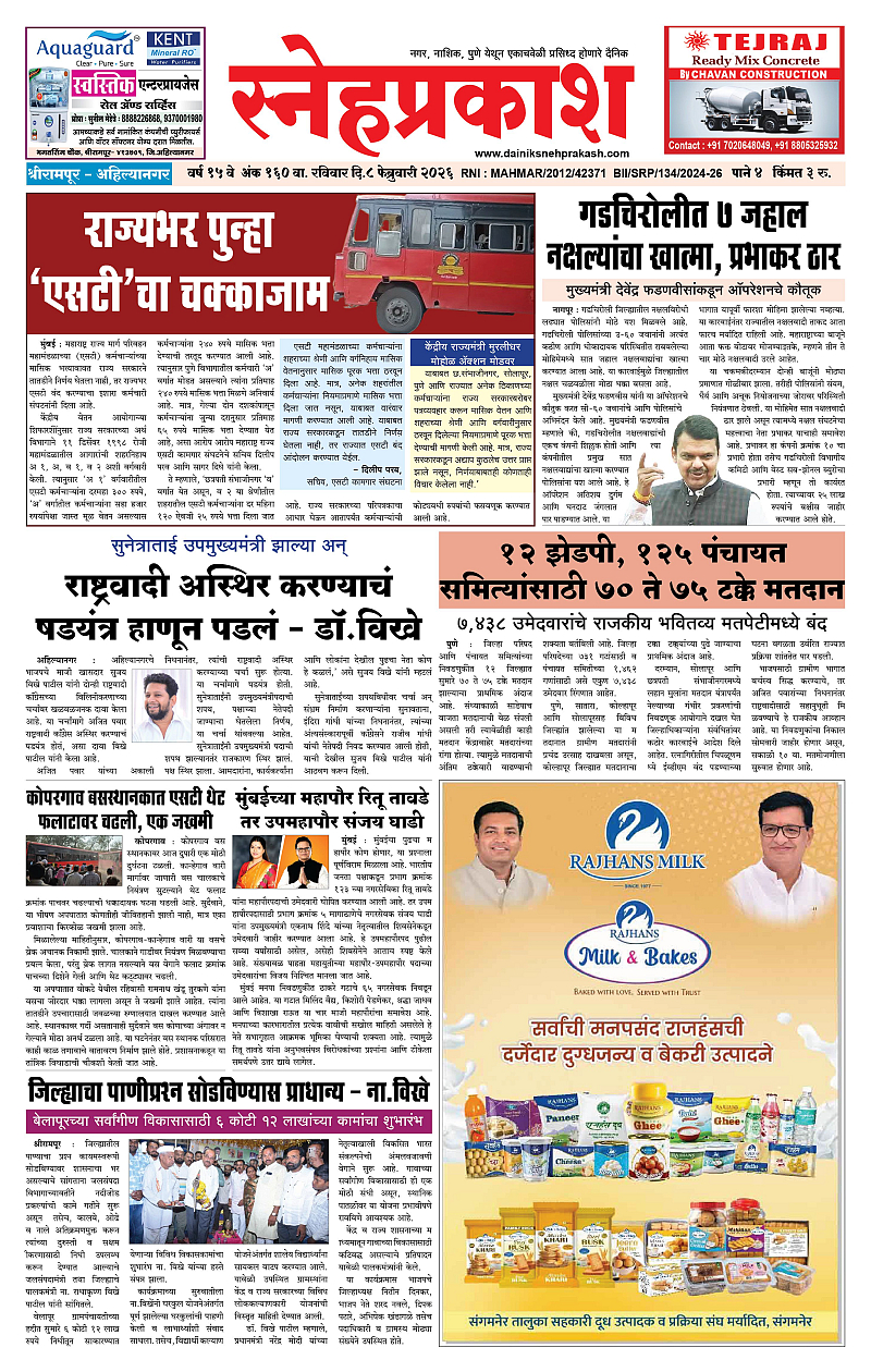 Daily Snehprakash (Marathi) February 08, 2026 Ahilyanagar-Pune-Nashik-shrirampur maharashtra 1 2 3 4 Page 1Page 2Page 3Page 4 × Daily Snehprakash (Marathi) 1-1234 << First << 1 >> Last >> Page no 1Page no 2Page no 3Page no 4