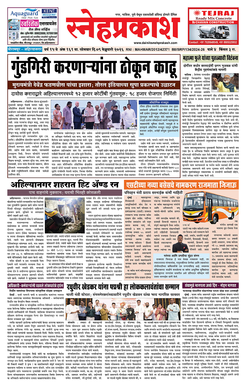 Daily Snehprakash (Marathi) February 09, 2026 Ahilyanagar-Pune-Nashik-shrirampur maharashtra 1 2 3 4 Page 1Page 2Page 3Page 4 × Daily Snehprakash (Marathi) 1234 << First << 1 >> Last >> Page no 1Page no 2Page no 3Page no 4