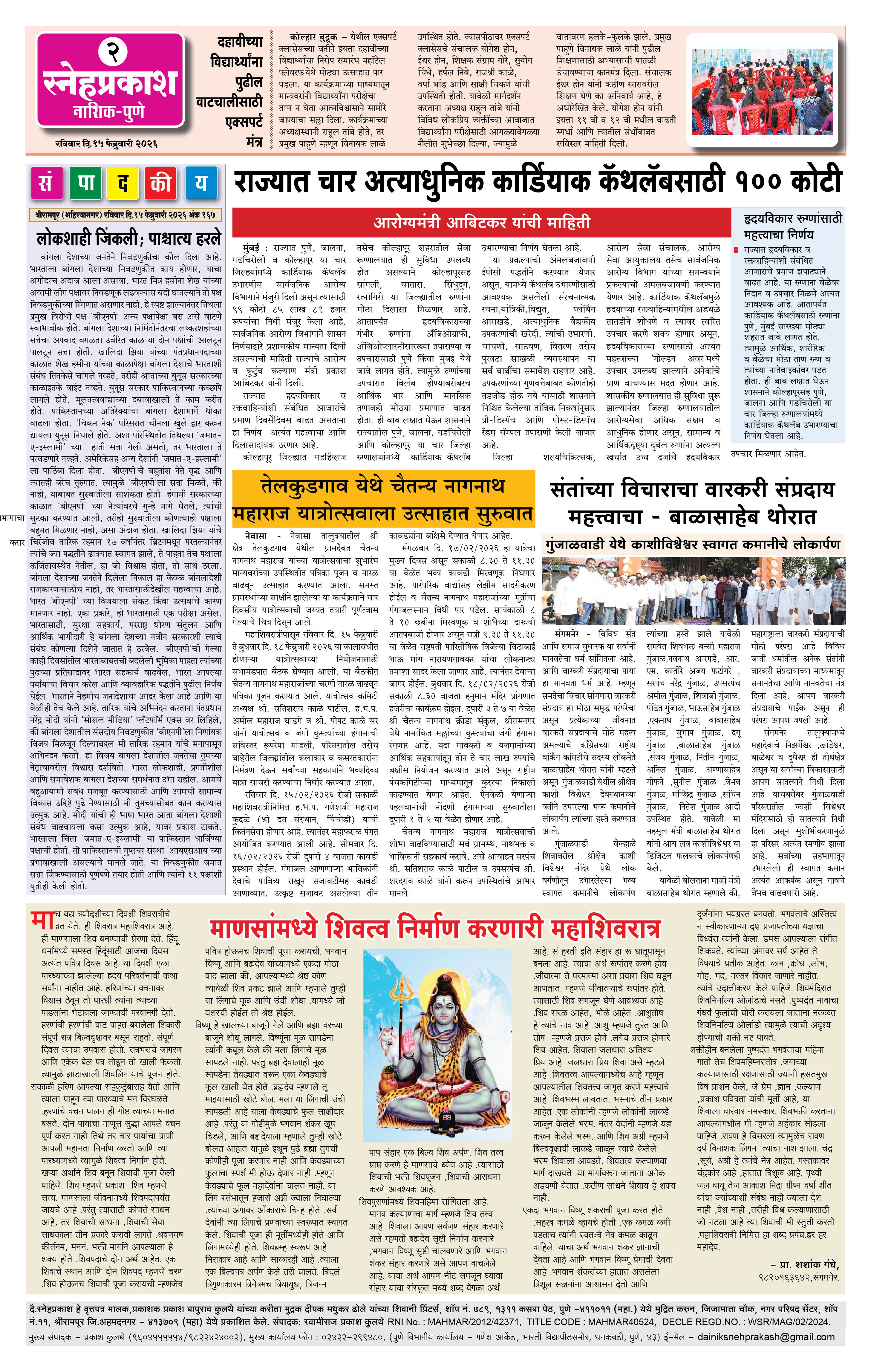 Daily Snehprakash (Marathi) Page: 2 February 15, 2026 Ahilyanagar-Pune-Nashik-shrirampur maharashtra 1 2 3 4 Page 1Page 2Page 3Page 4 × Daily Snehprakash (Marathi) 1121314 << First << 2 >> Last >> Page no 1Page no 2Page no 3Page no 4