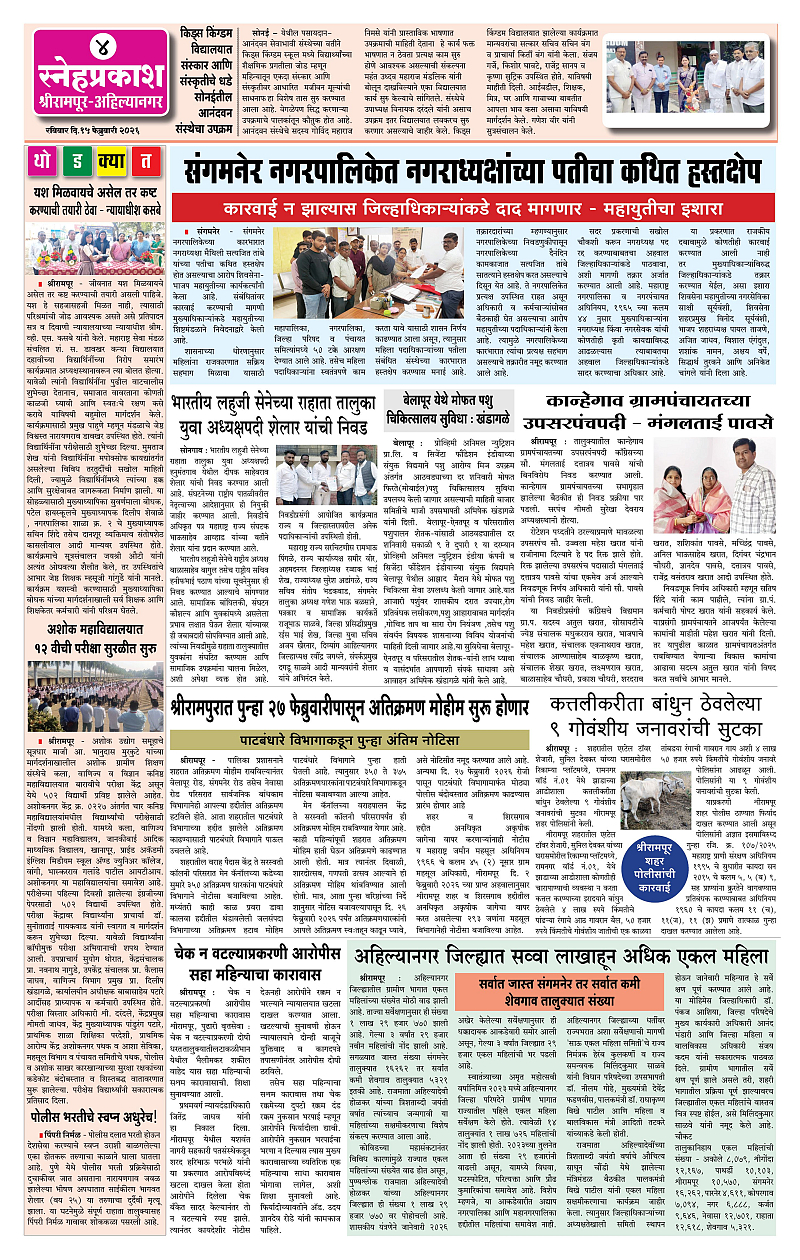 Daily Snehprakash (Marathi) Page: 4 February 15, 2026 Ahilyanagar-Pune-Nashik-shrirampur maharashtra 1 2 3 4 Page 1Page 2Page 3Page 4 × Daily Snehprakash (Marathi) 1121314 << First << 4 >> Last >> Page no 1Page no 2Page no 3Page no 4