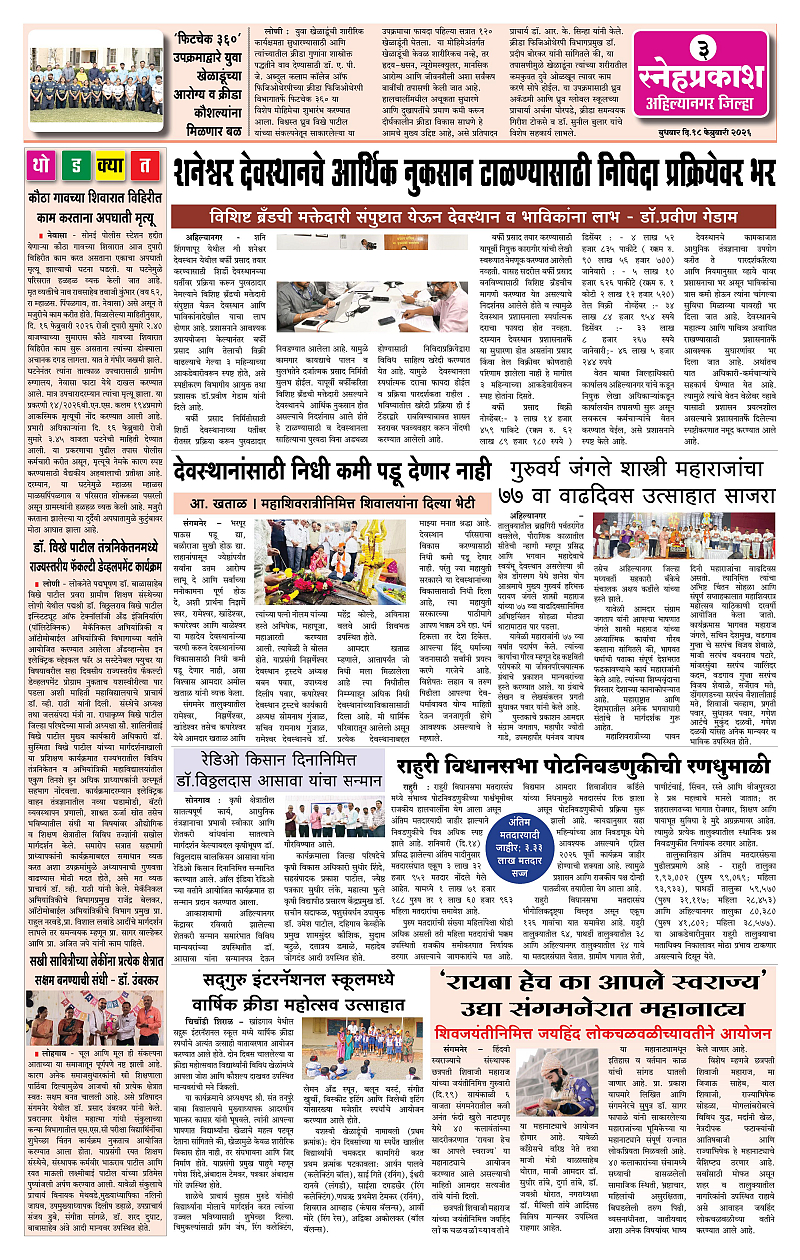 Daily Snehprakash (Marathi) Page: 3 February 18, 2026 Ahilyanagar-Pune-Nashik-shrirampur maharashtra 1 2 3 4 Page 1Page 2Page 3Page 4 × Daily Snehprakash (Marathi) 1111213 << First << 3 >> Last >> Page no 1Page no 2Page no 3Page no 4