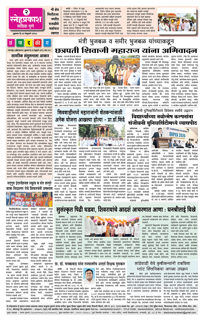 Daily Snehprakash (Marathi) Page: 2 February 20, 2026 Ahilyanagar-Pune-Nashik-shrirampur maharashtra 1 2 3 4 Page 1Page 2Page 3Page 4 × Daily Snehprakash (Marathi) 1-31-321-331-34 << First << 2 >> Last >> Page no 1Page no 2Page no 3Page no 4