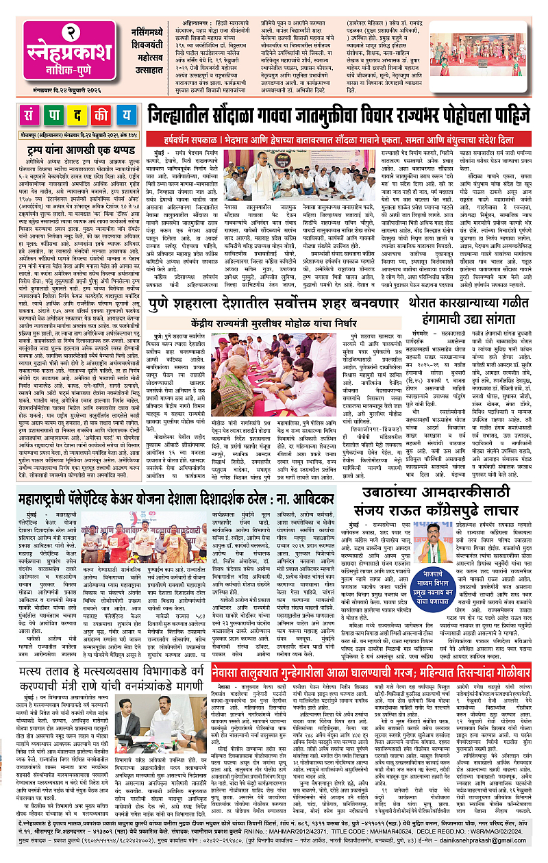 Daily Snehprakash (Marathi) Page: 2 February 24, 2026 Ahilyanagar-Pune-Nashik-shrirampur maharashtra 1 2 3 4 Page 1Page 2Page 3Page 4 × Daily Snehprakash (Marathi) 1121314 << First << 2 >> Last >> Page no 1Page no 2Page no 3Page no 4