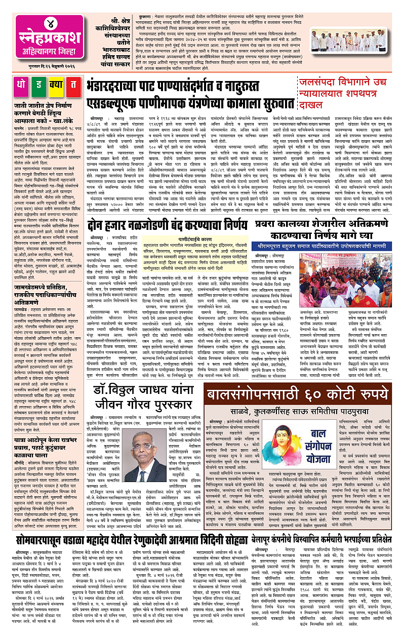 Daily Snehprakash (Marathi) Page: 4 February 26, 2026 Ahilyanagar-Pune-Nashik-shrirampur maharashtra 1 2 3 4 Page 1Page 2Page 3Page 4 × Daily Snehprakash (Marathi) 12-42-422-43 << First << 4 >> Last >> Page no 1Page no 2Page no 3Page no 4