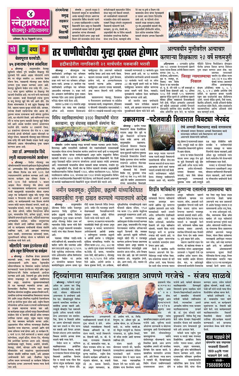 Daily Snehprakash (Marathi) Page: 4 February 28, 2026 Ahilyanagar-Pune-Nashik-shrirampur maharashtra 1 2 3 4 Page 1Page 2Page 3Page 4 × Daily Snehprakash (Marathi) 1-41-421-431-44 << First << 4 >> Last >> Page no 1Page no 2Page no 3Page no 4