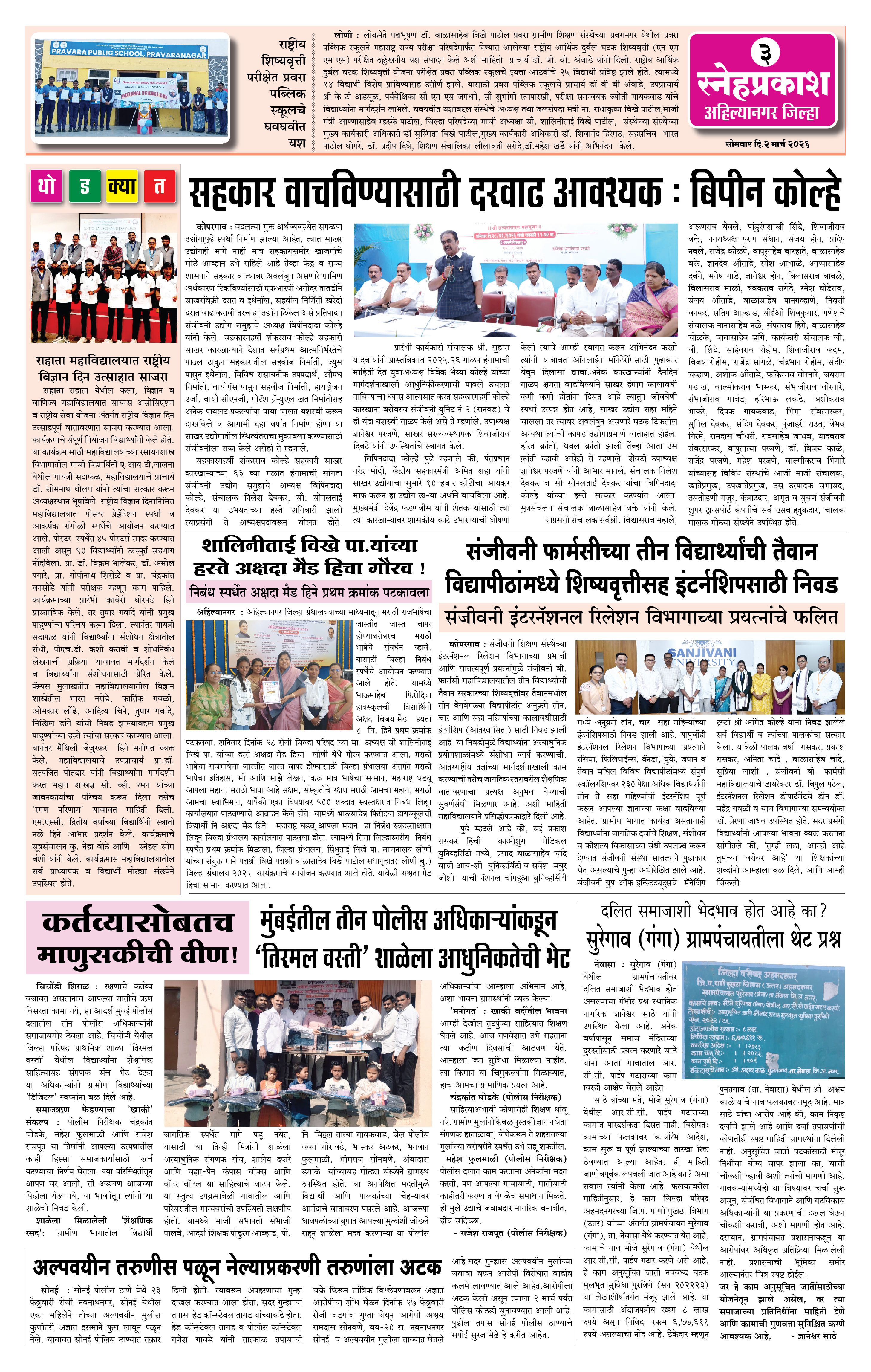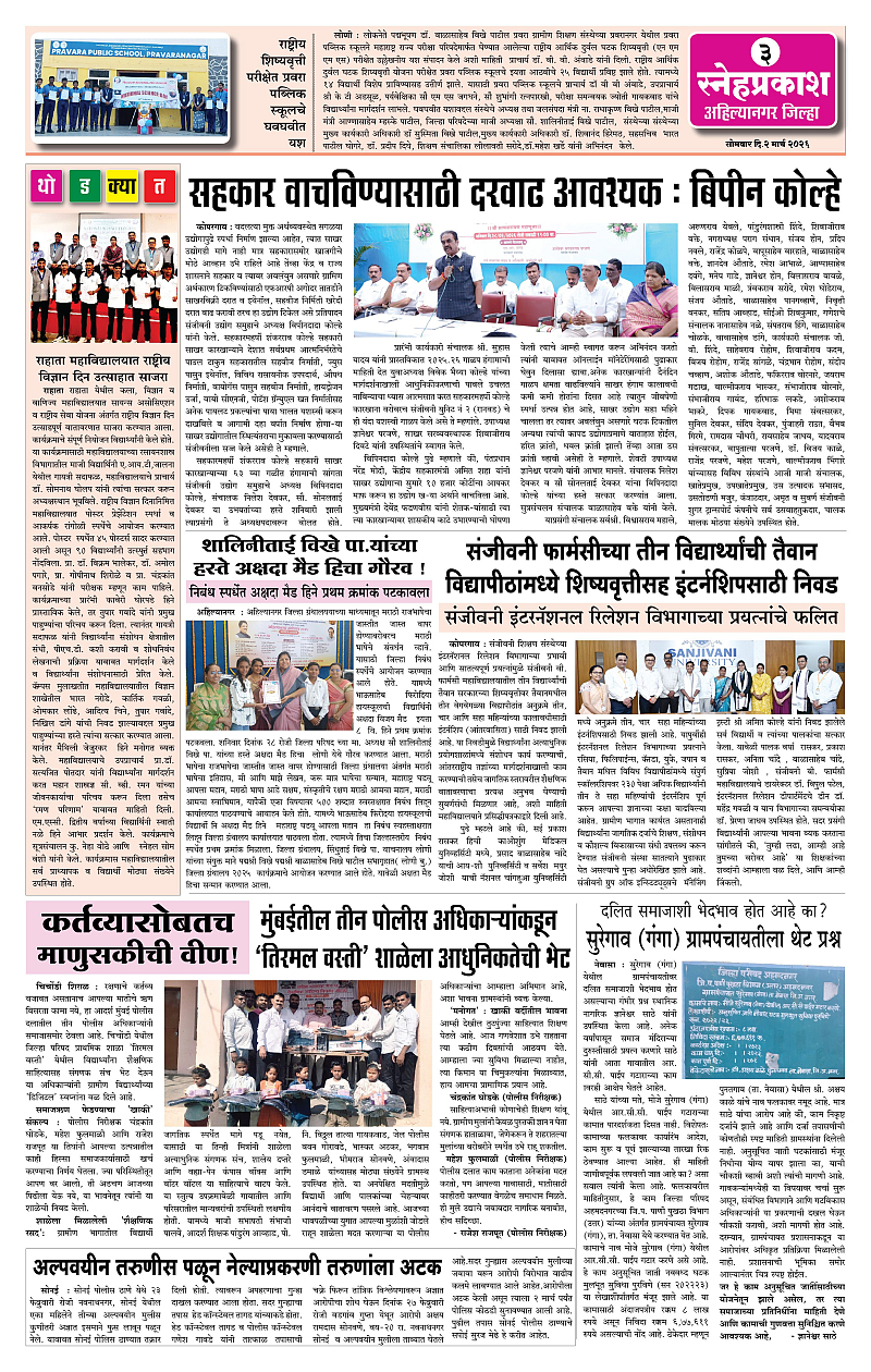 Daily Snehprakash (Marathi) Page: 3 March 02, 2026 Ahilyanagar-Pune-Nashik-shrirampur maharashtra 1 2 3 4 Page 1Page 2Page 3Page 4 × Daily Snehprakash (Marathi) 1-41-421-431-44 << First << 3 >> Last >> Page no 1Page no 2Page no 3Page no 4