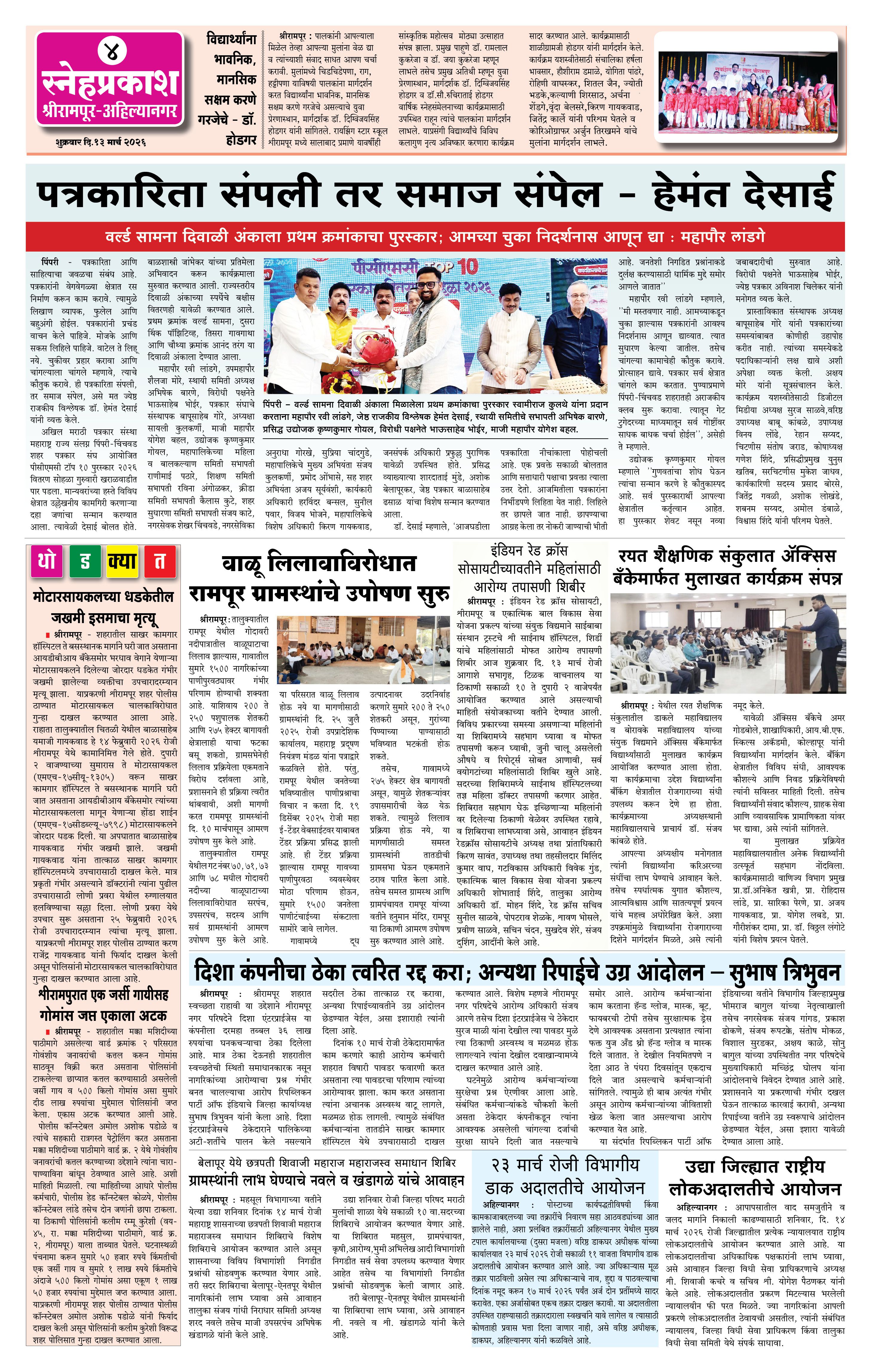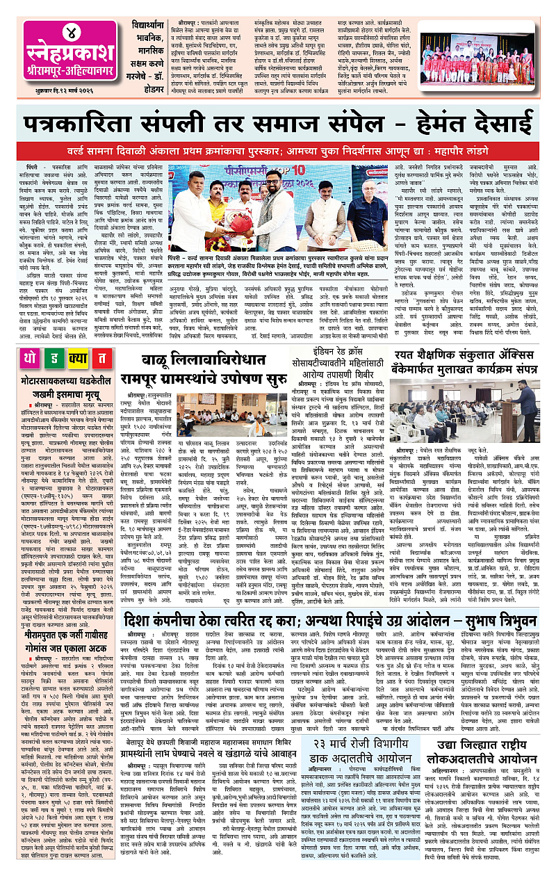 Daily Snehprakash (Marathi) Page: 4 March 13, 2026 Ahilyanagar-Pune-Nashik-shrirampur maharashtra 1 2 3 4 Page 1Page 2Page 3Page 4 × Daily Snehprakash (Marathi) 1-41-421-431-44 << First << 4 >> Last >> Page no 1Page no 2Page no 3Page no 4