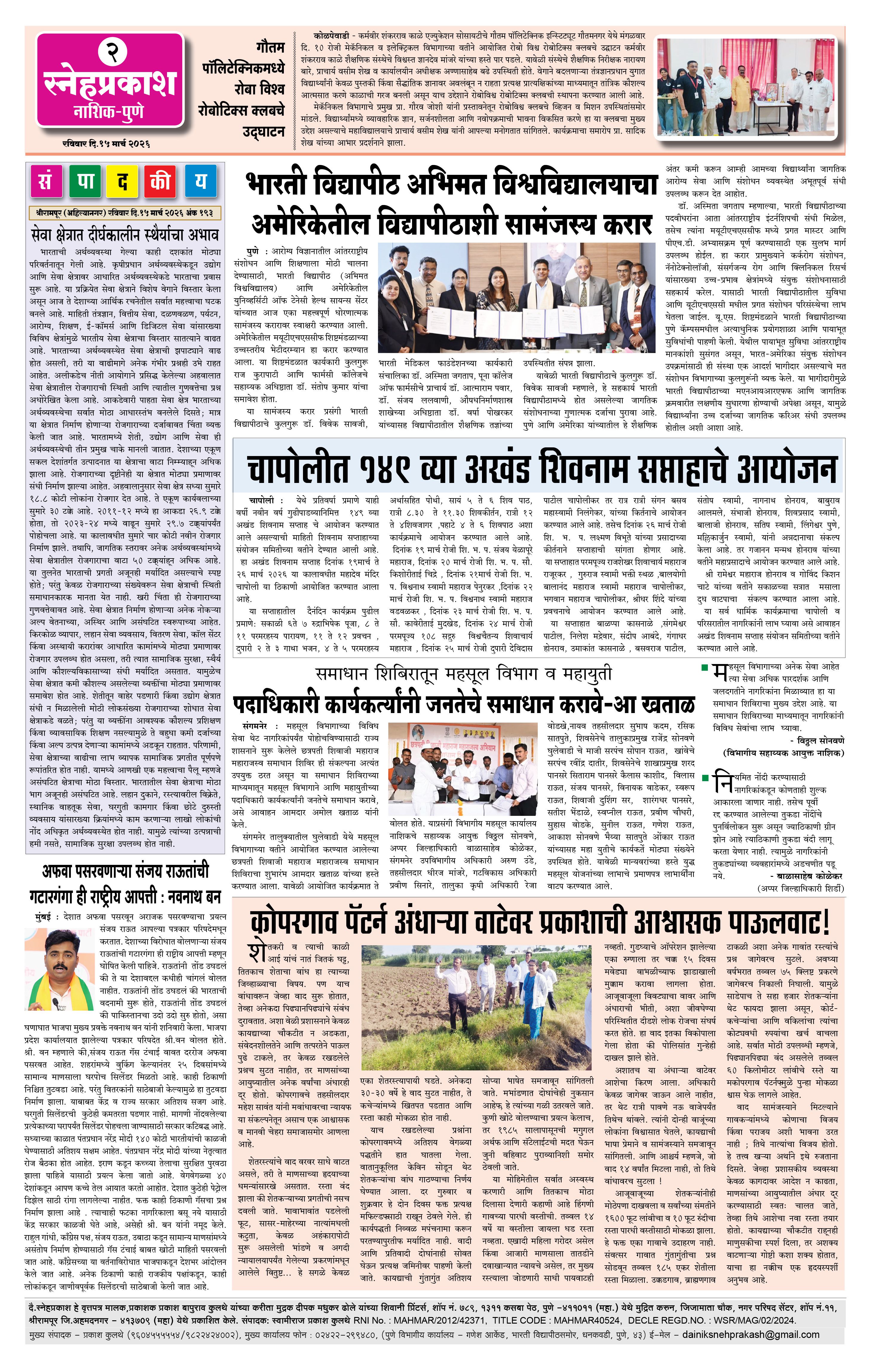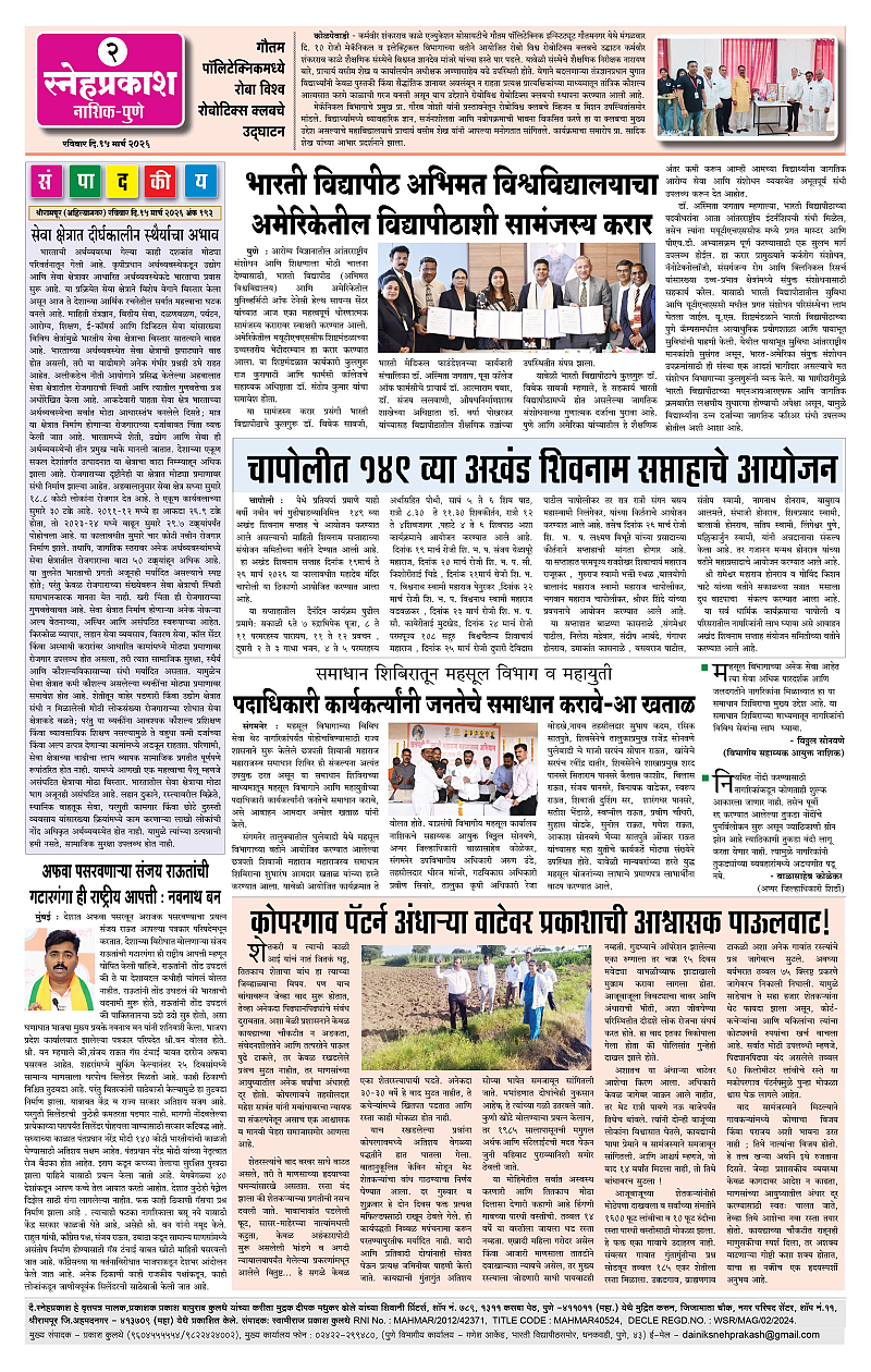 Daily Snehprakash (Marathi) Page: 2 March 15, 2026 Ahilyanagar-Pune-Nashik-shrirampur maharashtra 1 2 3 4 Page 1Page 2Page 3Page 4 × Daily Snehprakash (Marathi) 1-41-421-431-44 << First << 2 >> Last >> Page no 1Page no 2Page no 3Page no 4