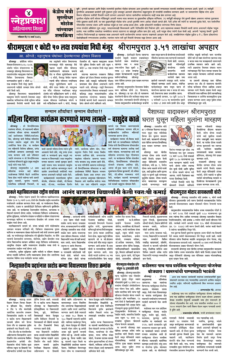 Daily Snehprakash (Marathi) Page: 4 March 15, 2026 Ahilyanagar-Pune-Nashik-shrirampur maharashtra 1 2 3 4 Page 1Page 2Page 3Page 4 × Daily Snehprakash (Marathi) 1-41-421-431-44 << First << 4 >> Last >> Page no 1Page no 2Page no 3Page no 4