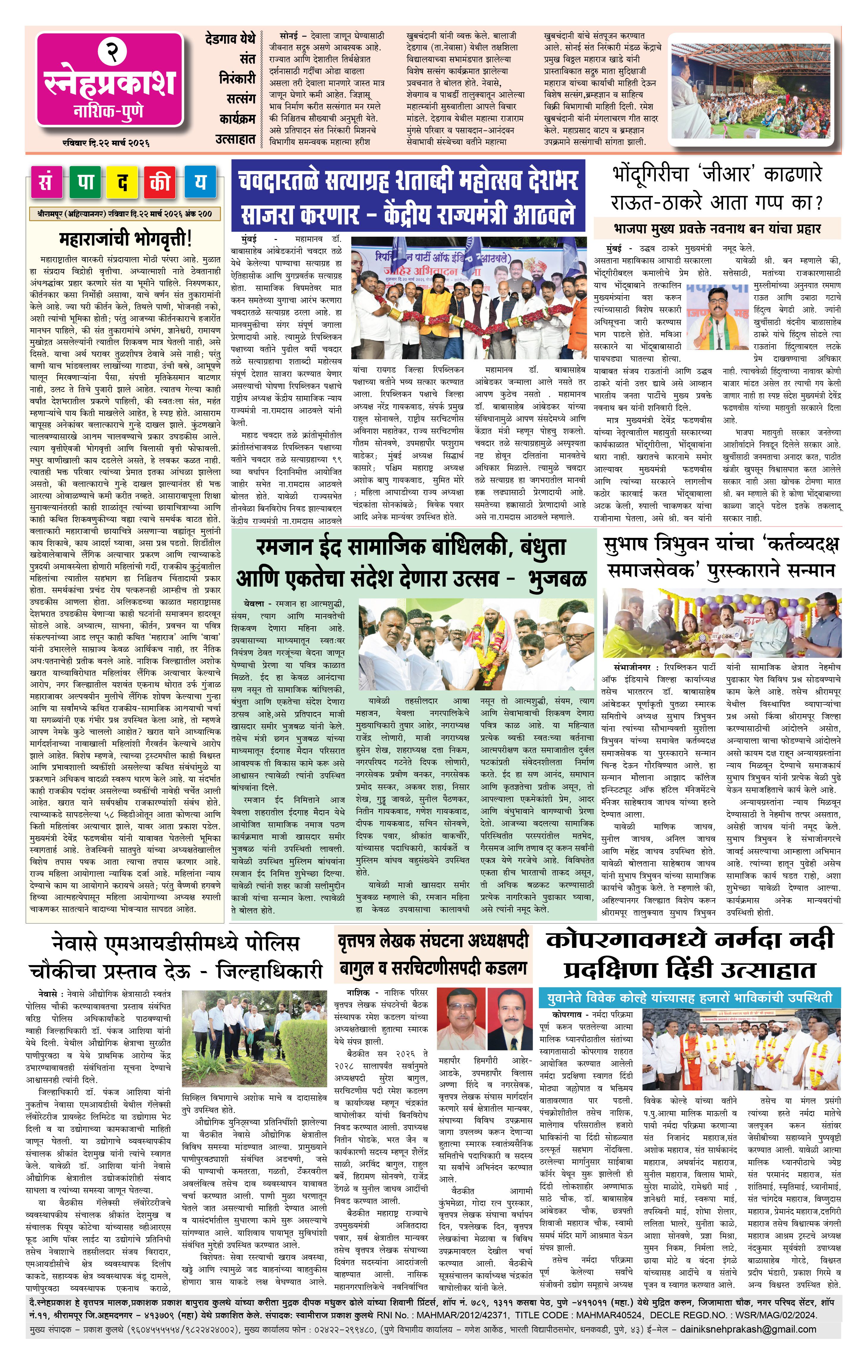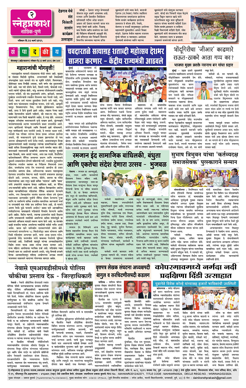 Daily Snehprakash (Marathi) Page: 2 March 22, 2026 Ahilyanagar-Pune-Nashik-shrirampur maharashtra 1 2 3 4 Page 1Page 2Page 3Page 4 × Daily Snehprakash (Marathi) 1-41-421-431-44 << First << 2 >> Last >> Page no 1Page no 2Page no 3Page no 4